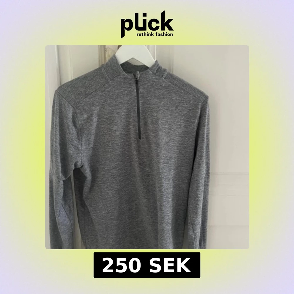 Säljer en grå långärmad Nike Dri-FIT tröja med half zip och hög krage. Perfekt för löpning eller träning, med diskret Nike-logga på bröstet och mjukt, stretchigt funktionsmaterial som andas.