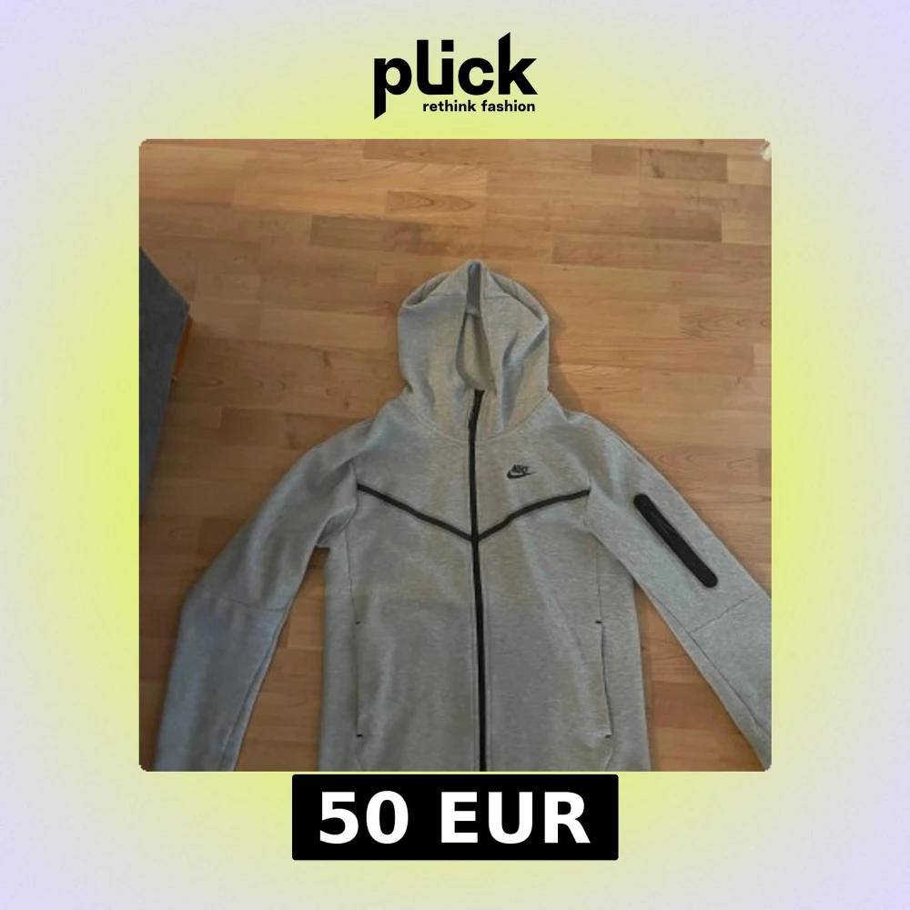 Snygg grå hoodie från Nike med hel dragkedja och svarta detaljer. Tröjan har huva, långa ärmar och en praktisk ficka på ena ärmen. Perfekt för en sportig look eller chill vardagsstil.