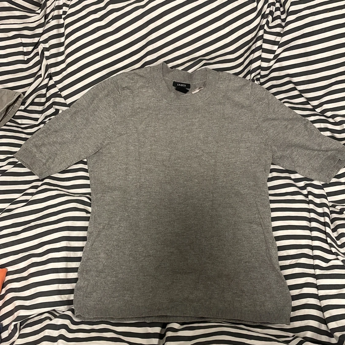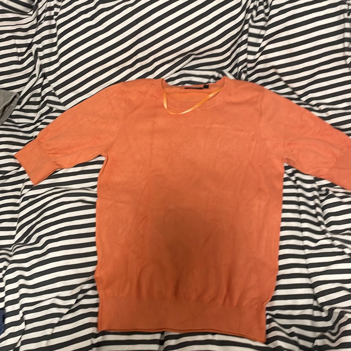 Två stilrena tröjor från Lindex och Kappahl , en i grått och en i orange. Båda har rund halsringning och halvlånga ärmar. Perfekta för lager-på-lager och funkar året runt. Materialet känns mjukt och lätt, troligen bomull eller en bomullsblandning.