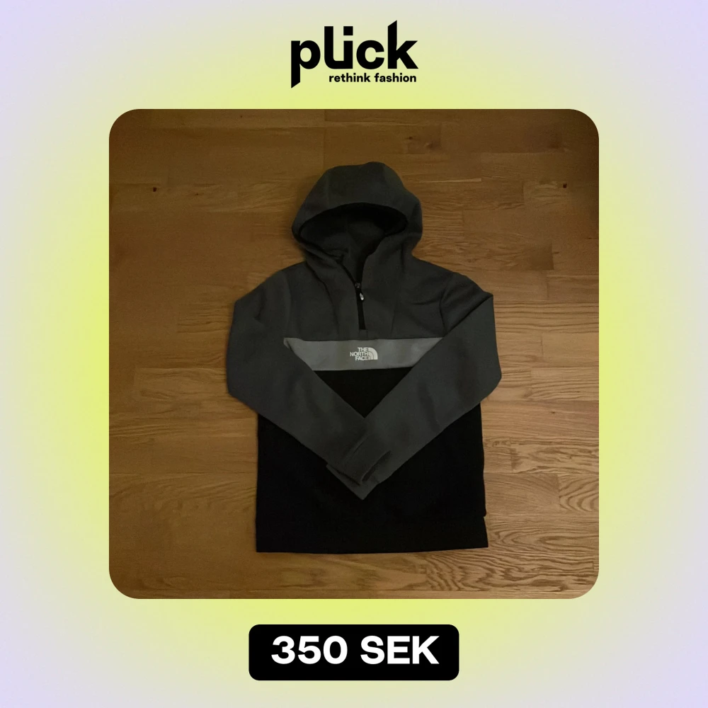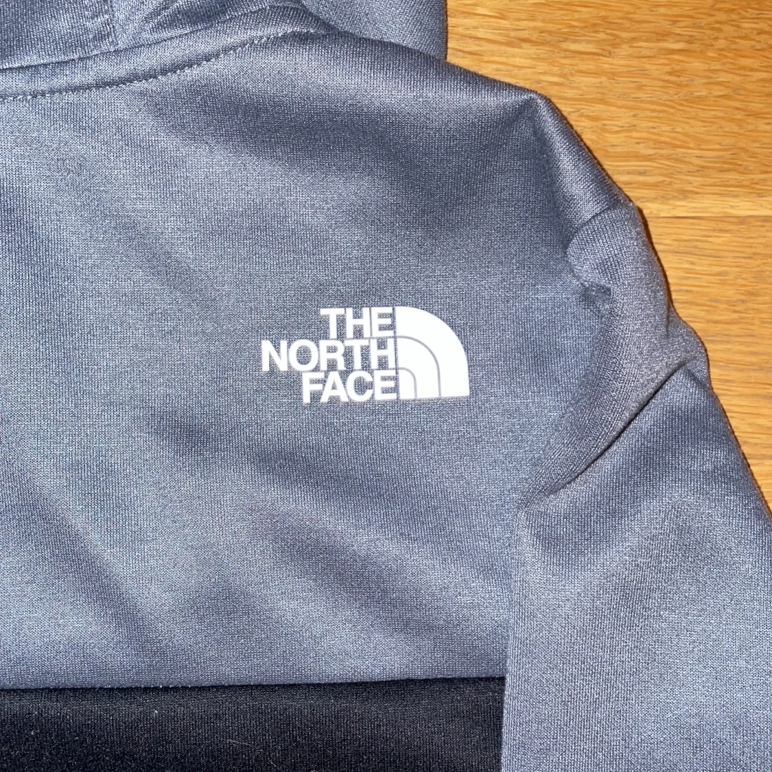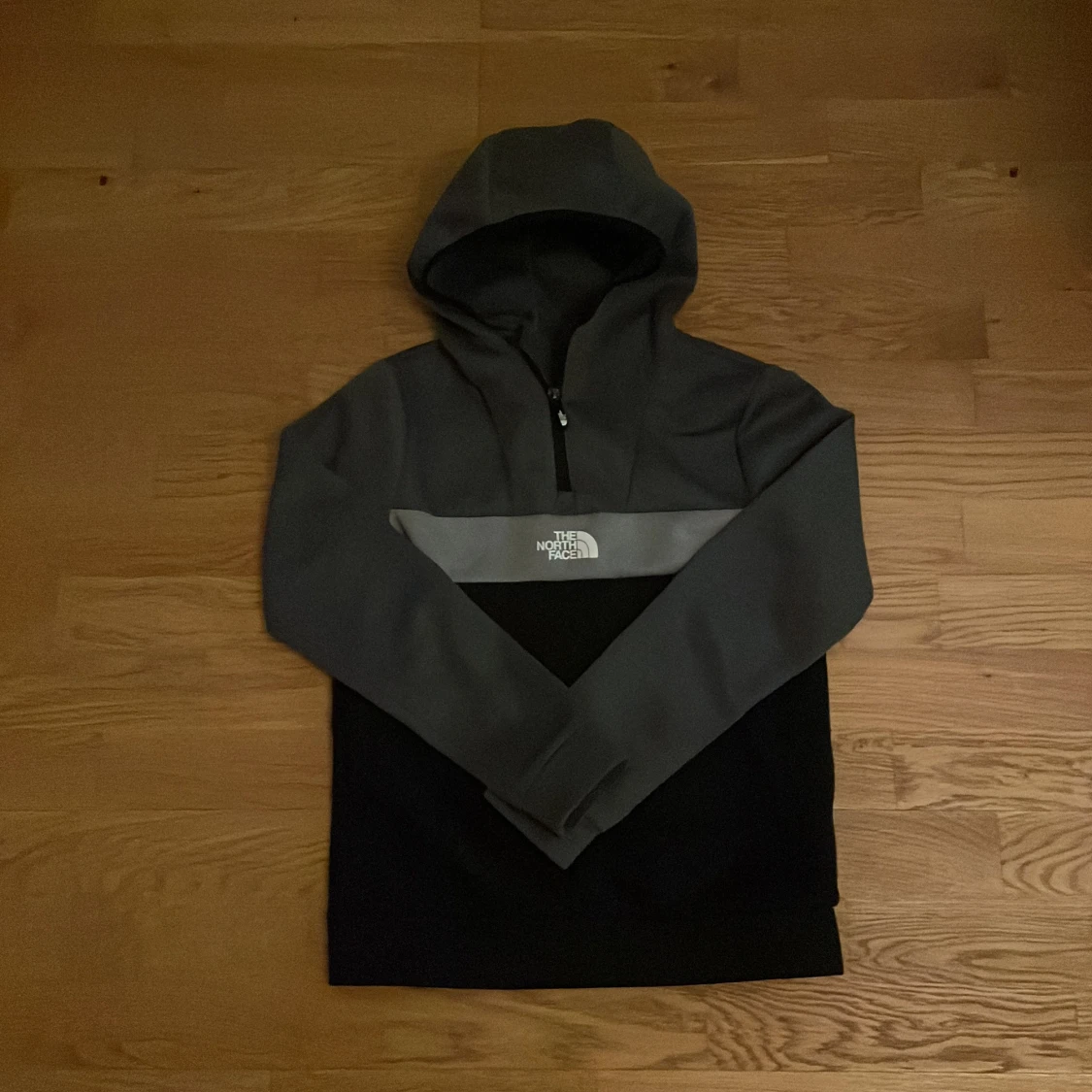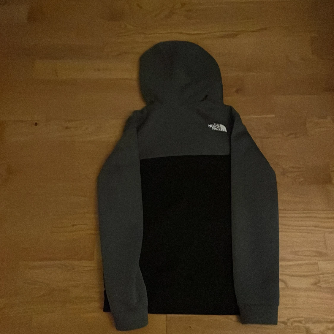 Säljer en snygg och bekväm grå och svart hoodie från The North Face. Perfekt för kyliga dagar med sin mjuka insida och praktiska huva. Den har en dragkedja framtill och loggan är tryckt på bröstet. Passar både till vardags och träning. 🖤