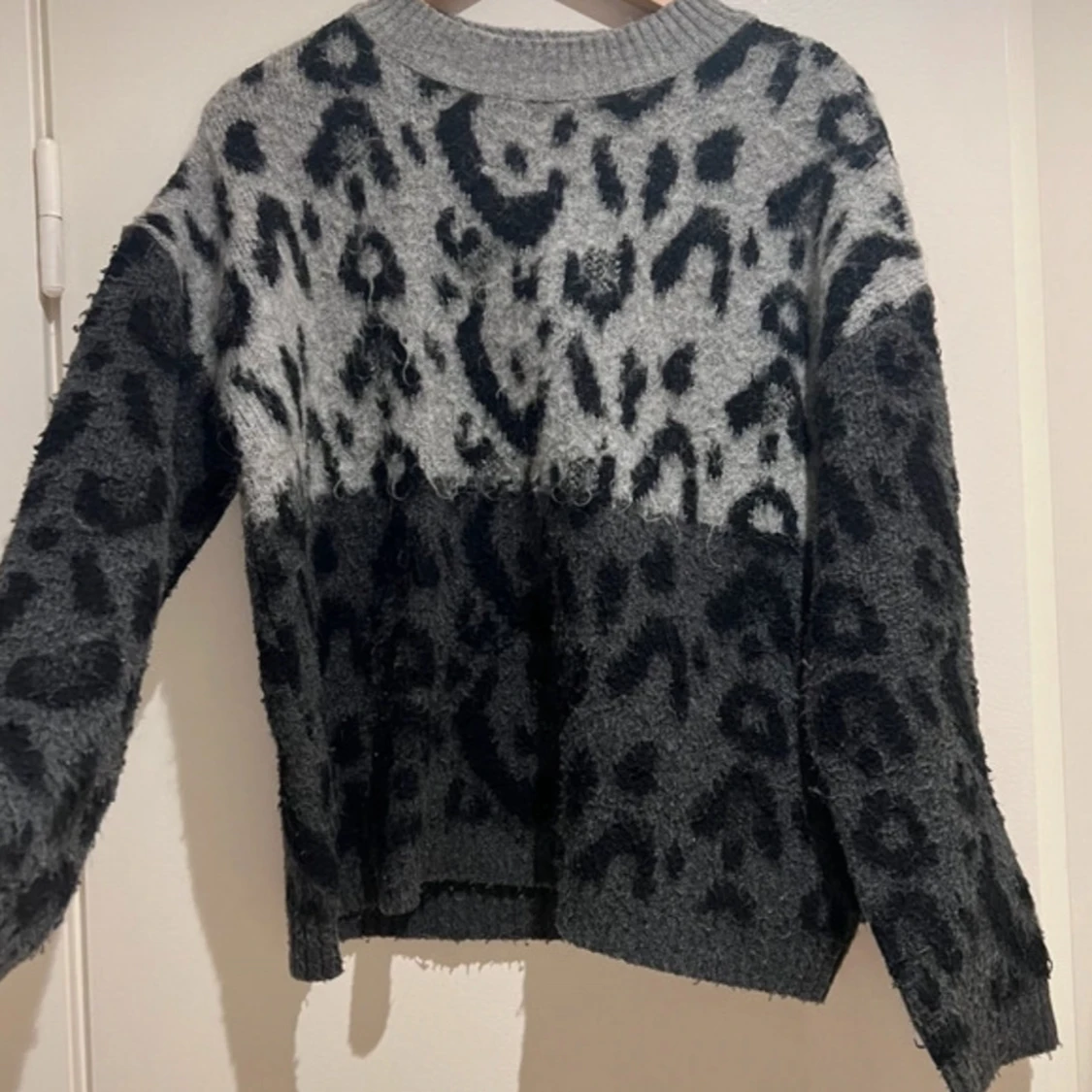 Säljer en cool grå och svart tröja med leopardmönster. Tröjan har långa ärmar och en avslappnad passform. Perfekt för att ge din outfit en trendig touch.❤️