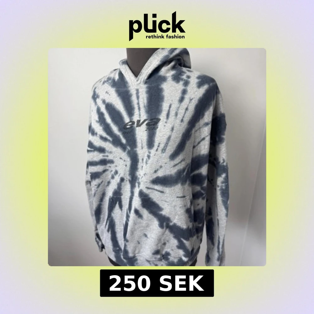 Säljer en grå hoodie med svart tie-dye mönster från EVA. Tröjan har huva och en broderad logga framtill. Perfekt för en avslappnad stil och passar till det mesta. Storlek M och är i mycket bra skick😊