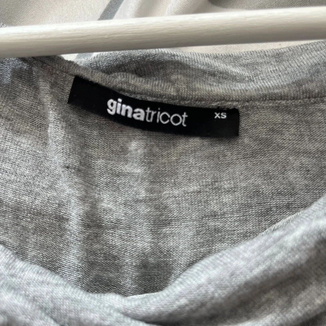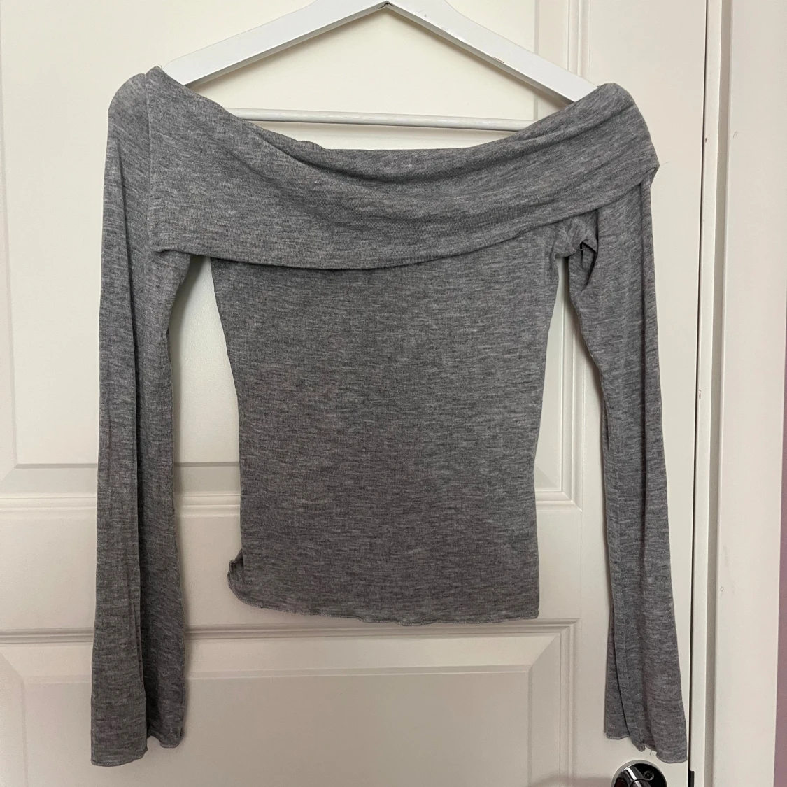 Säljer en ljusgrå offshoulder topp från Gina Tricot i storlek XS. Toppen är tight, har långa ärmar och är tillverkad i mjuk bomullsblandning. Perfekt för dig som gillar en stilren och enkel look med en twist.