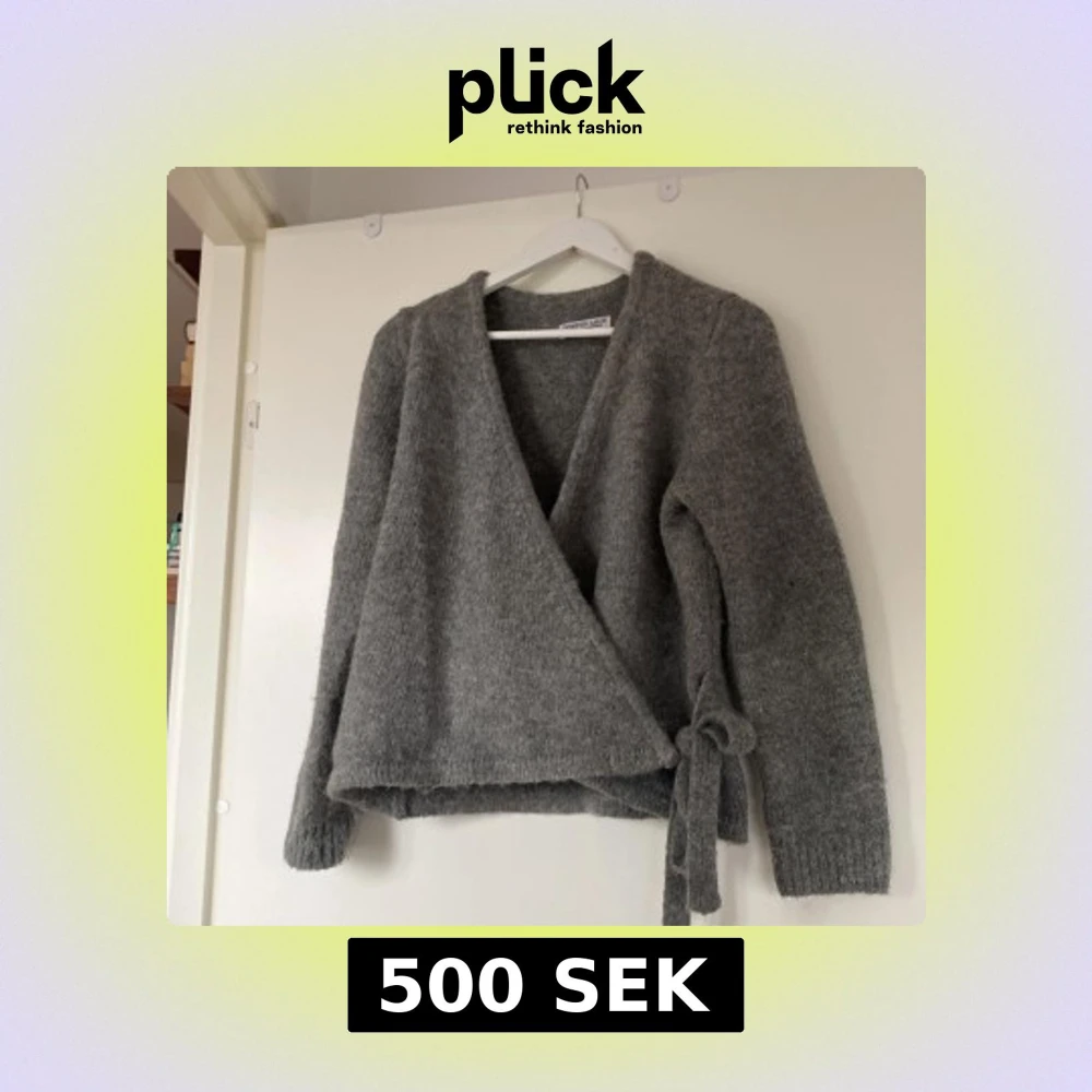 Säljer en mysig grå omlottkofta från Design by Amor. Koftan har långa ärmar och ett knytband i midjan för en justerbar passform. Perfekt för kyliga dagar och ger en stilren look. Passar bra till både jeans och kjol.