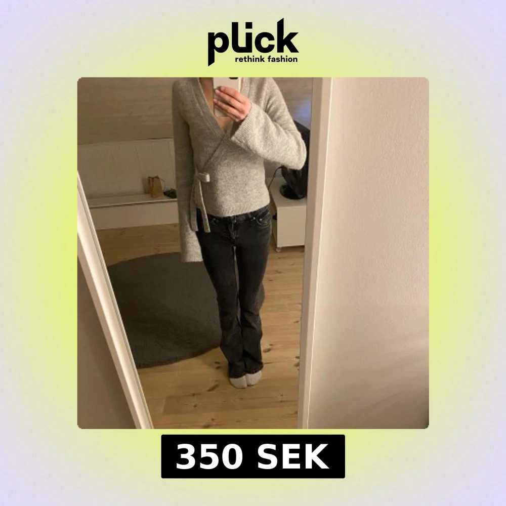 Säljer en mysig grå omlottkofta från Gina Tricot i premiumkvalitet. Koftan har långa ärmar och knytband i midjan för en justerbar passform. Perfekt för kyliga dagar!
