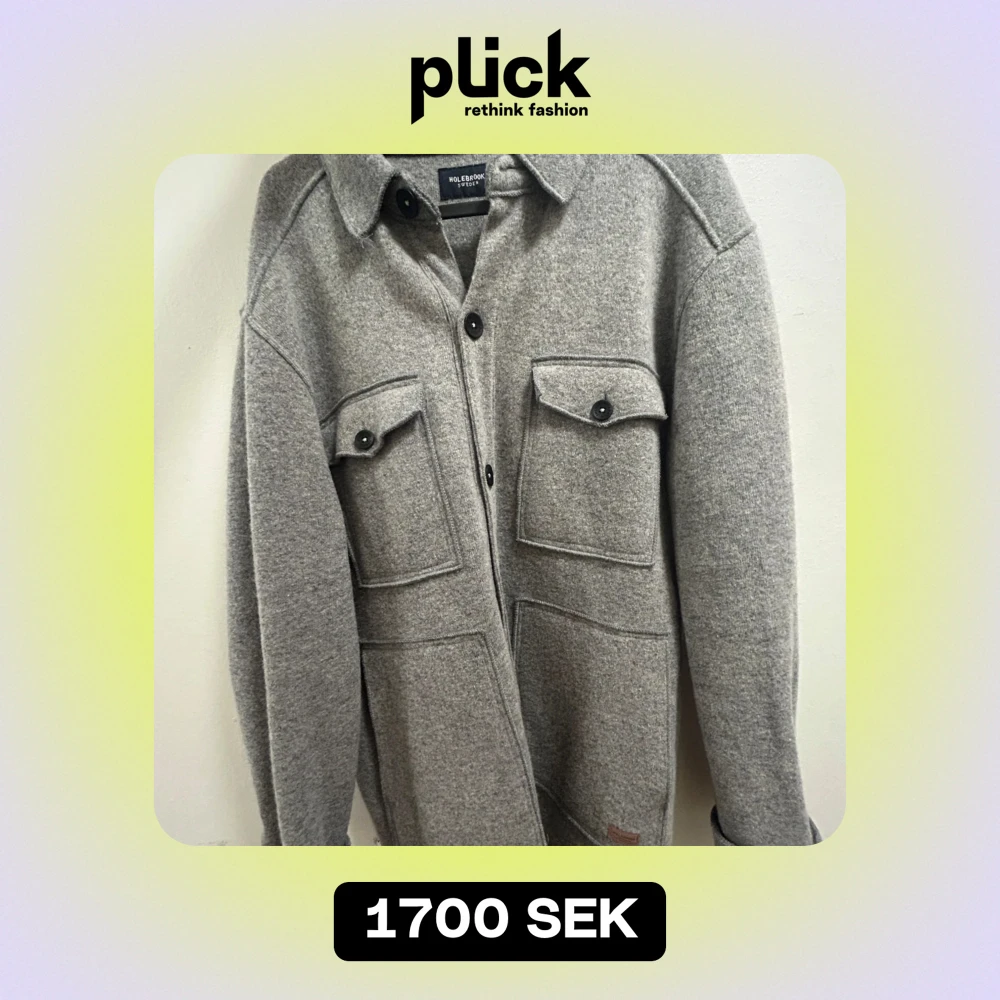 Säljer en snygg grå overshirt från Holebrook Sweden i storlek L. Den har en stilren design med knappar och två stora bröstfickor. Perfekt för höst och vår, och den är i mycket bra skick. Passar både till vardags och lite finare tillfällen.