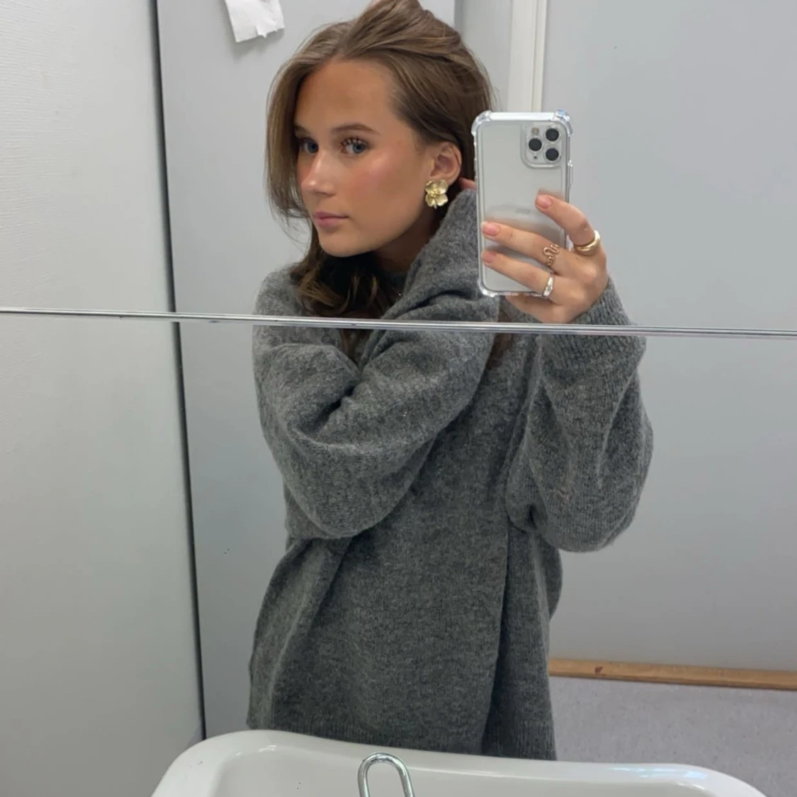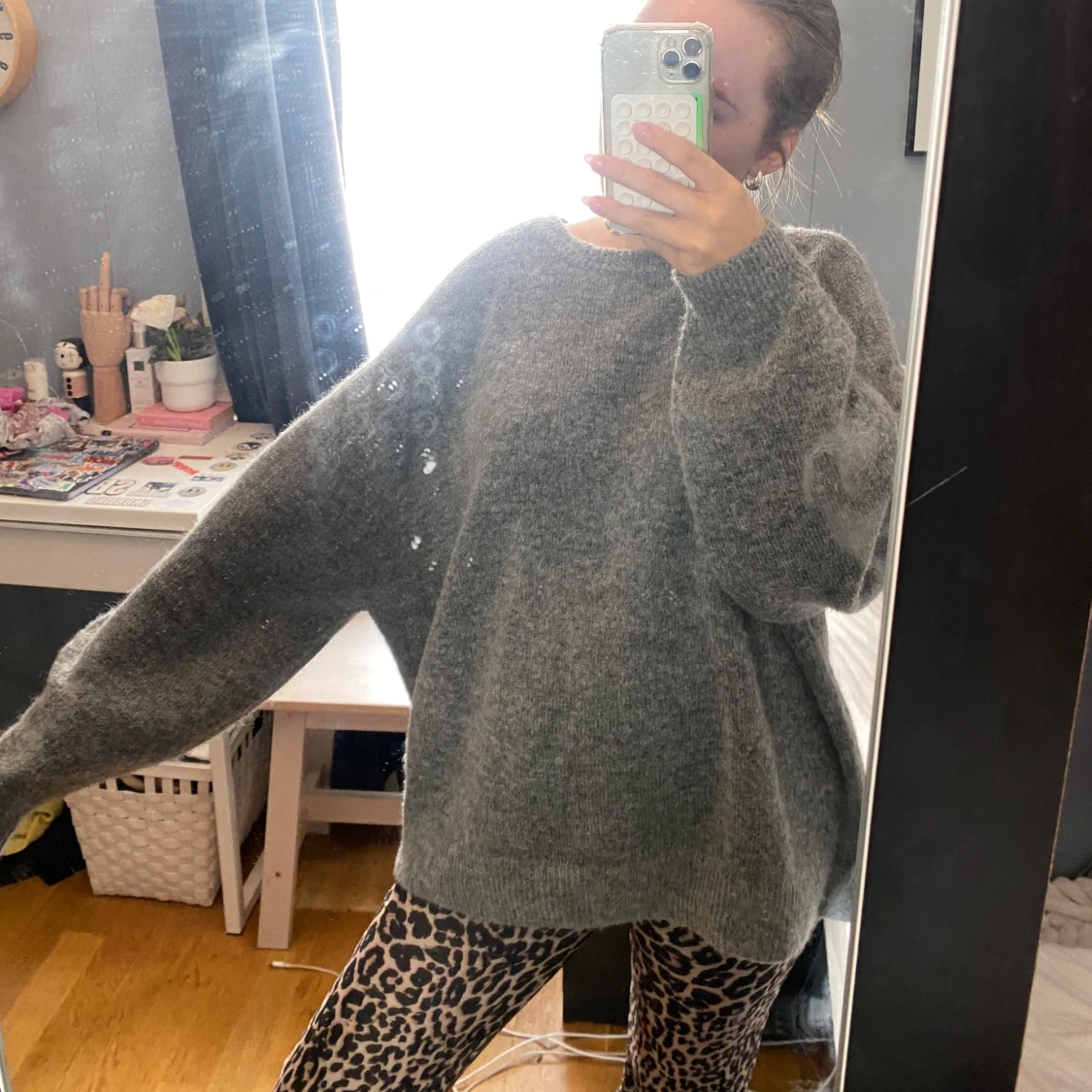 Mysig grå stickad tröja med en oversized passform. Str s men ar mer en m/l.