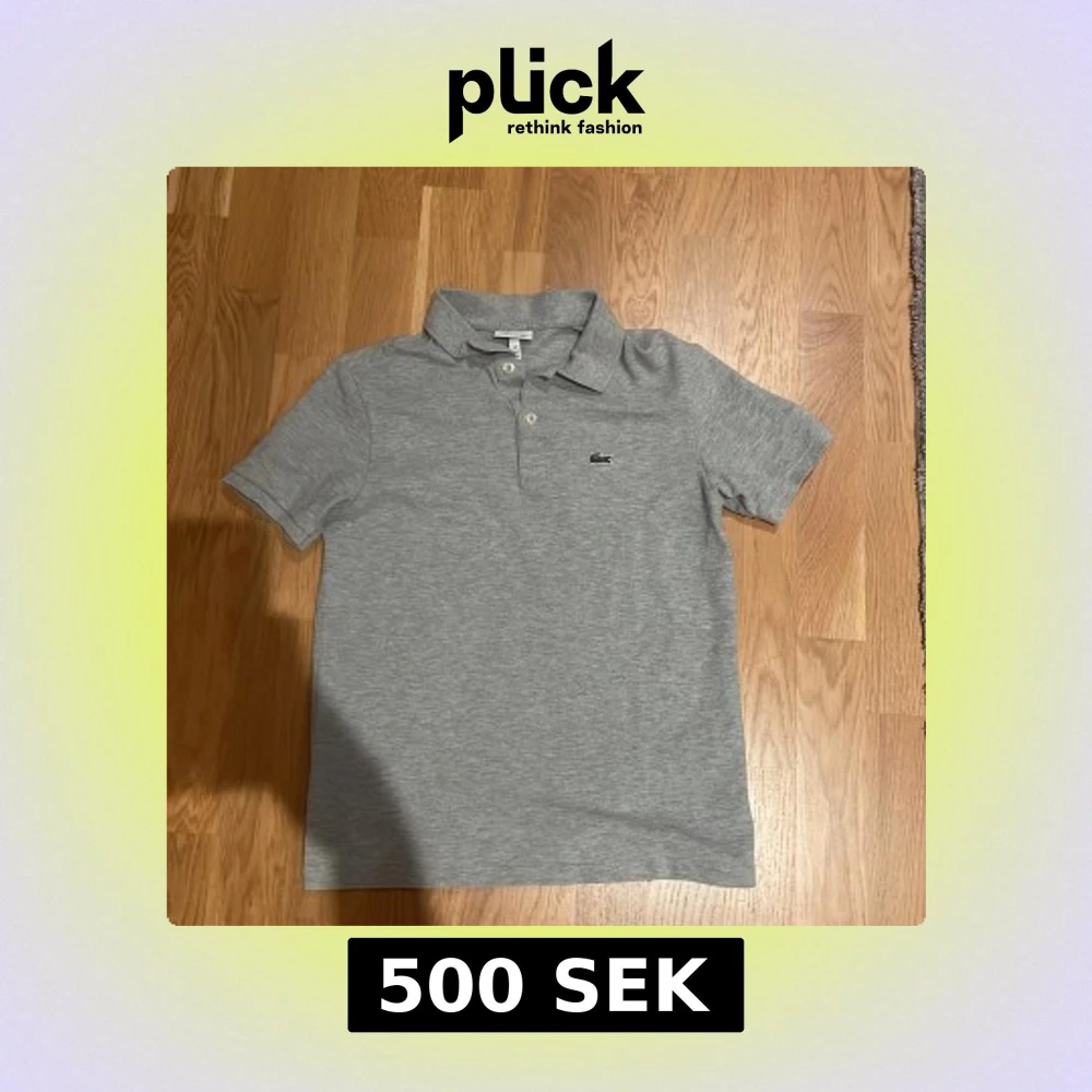 Snygg grå pikétröja från Lacoste med klassisk krage och två knappar framtill. Tröjan har korta ärmar och den ikoniska gröna krokodilloggan broderad på bröstet. Perfekt för dig som gillar stilrena och sportiga plagg. Vänligt länge sedan jag hade på mig den sist, använt max 3 gånger eftersom den redan var liten för mig när jag fick den som present. Storlek 14/164 fast kan passa 15/170 beronde på hur slim fit du vill ha den. KOM MED FRÅGOR OCH PRISFÖRSLAG ‼️