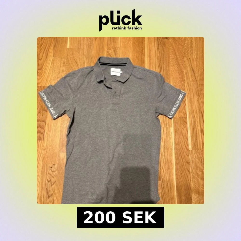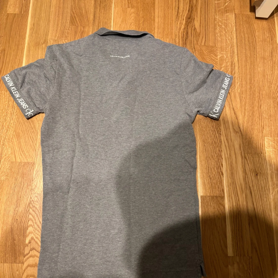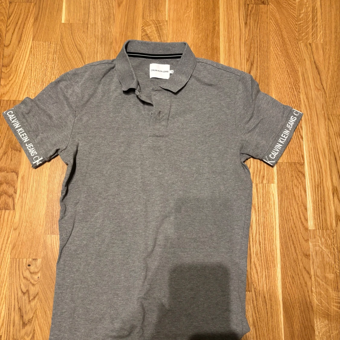 Säljer en stilren grå pikétröja från Calvin Klein Jeans. Tröjan har klassisk krage och korta ärmar med logotypen tryckt på båda ärmarna. Perfekt för en clean och avslappnad look.