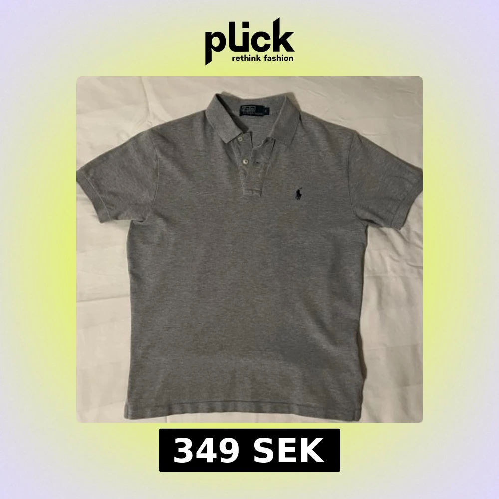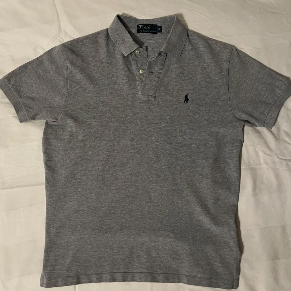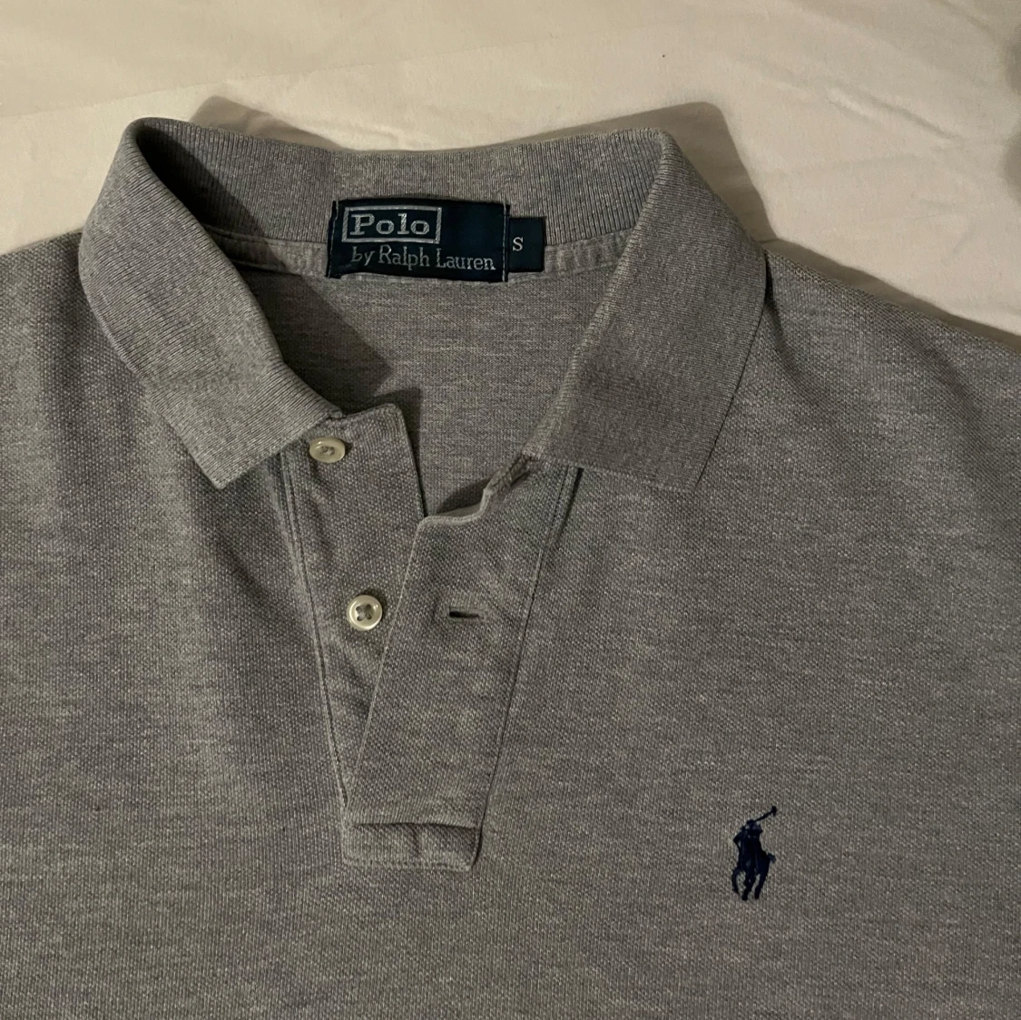 Säljer en klassisk grå pikétröja från Ralph Lauren med korta ärmar och den ikoniska loggan broderad på bröstet. Perfekt för en stilren och avslappnad look. Väldigt snygg Piké som passar formella evenemang men även vardagligt bruk!