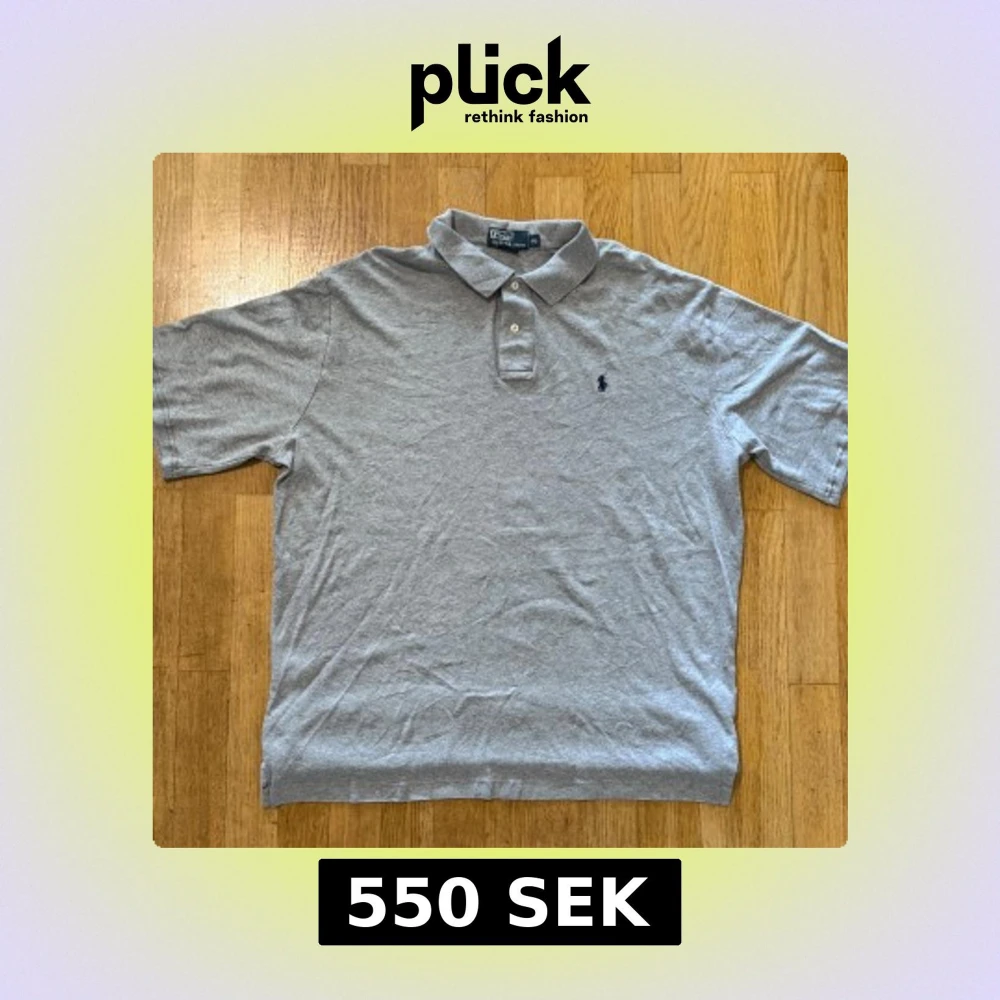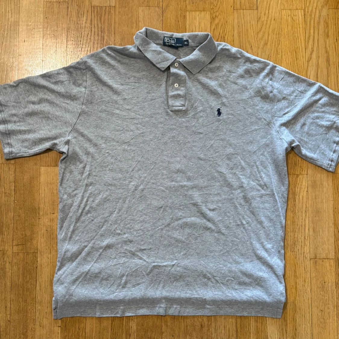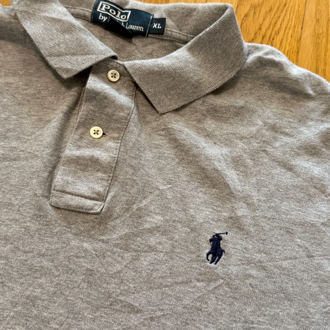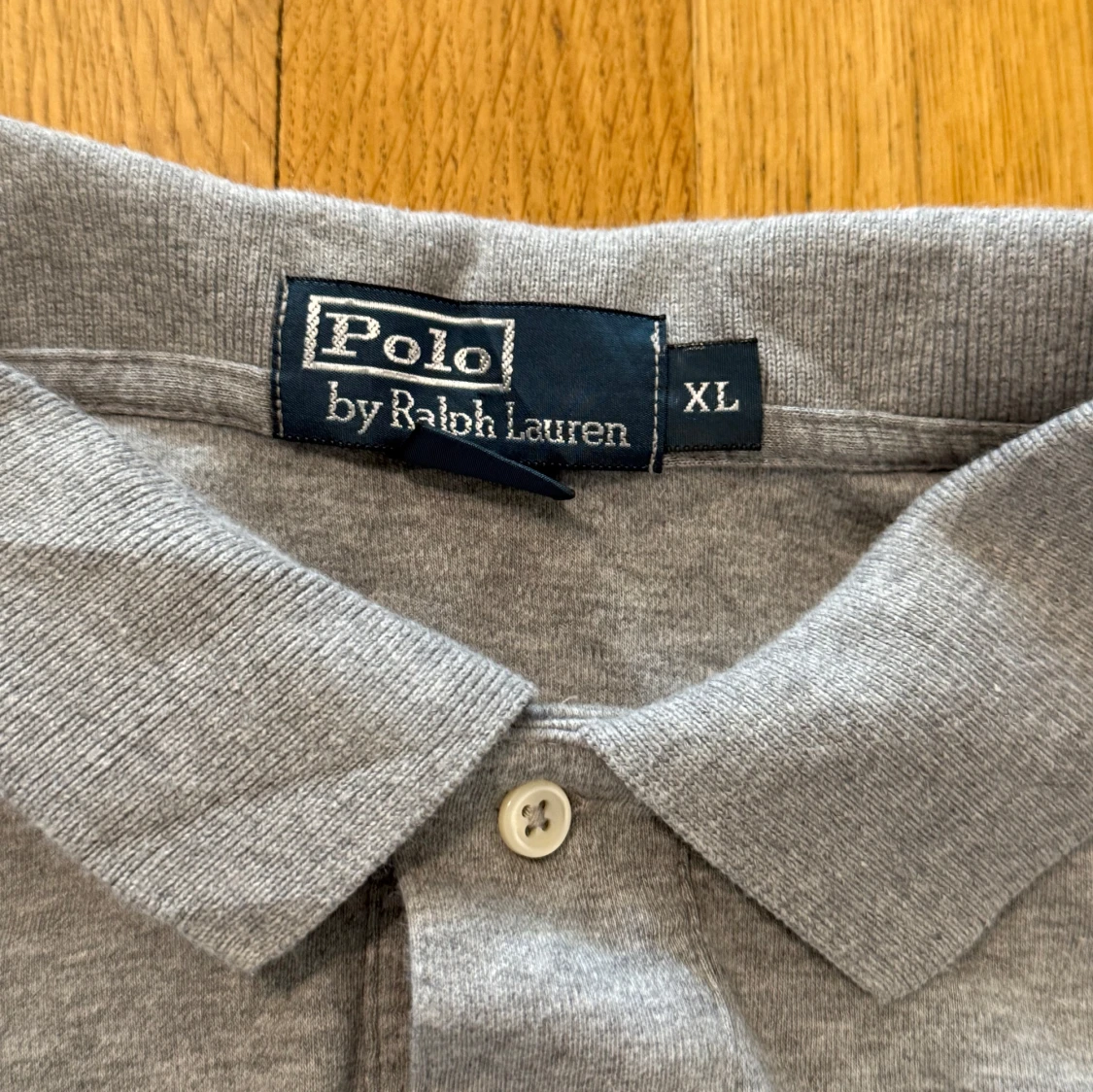 Klassisk grå pikétröja från Ralph Lauren i storlek XL. Tröjan har korta ärmar, krage med två knappar och den ikoniska broderade loggan på bröstet. Tillverkad i mjuk bomull som känns skön mot huden. Perfekt för en clean och stilren look.