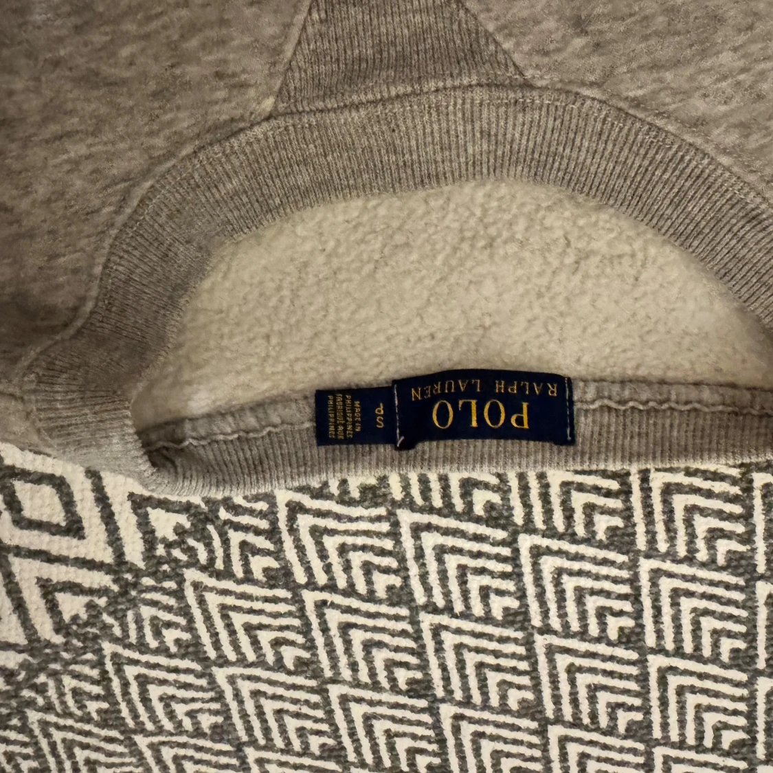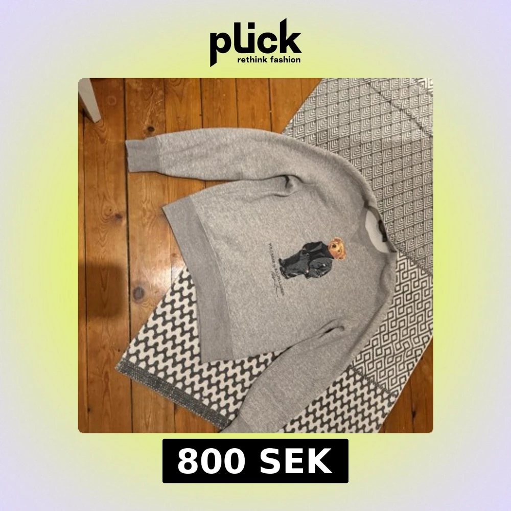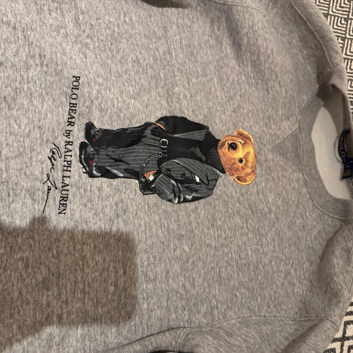 Grå sweatshirt från Ralph Lauren med ikoniska Polo Bear-trycket framtill. Tröjan har rund hals, ribbade muddar och mjuk insida. Perfekt för dig som gillar streetstyle och vill ha något bekvämt men ändå snyggt.
