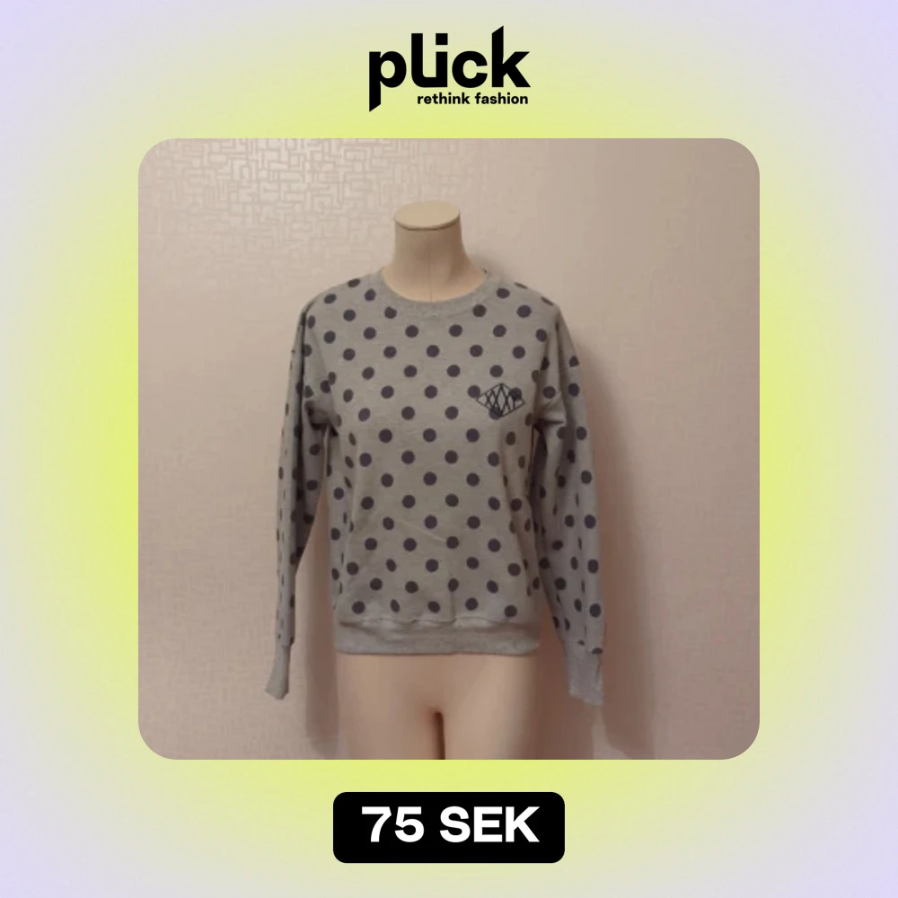 Säljer en superfin grå tröja med mörkblå prickar över hela. Den har en unik mönsterdetalj på bröstet som ger den lite extra stil. Tröjan är långärmad och perfekt för både vardag och chill. Den är i bra skick och redo för en ny ägare!