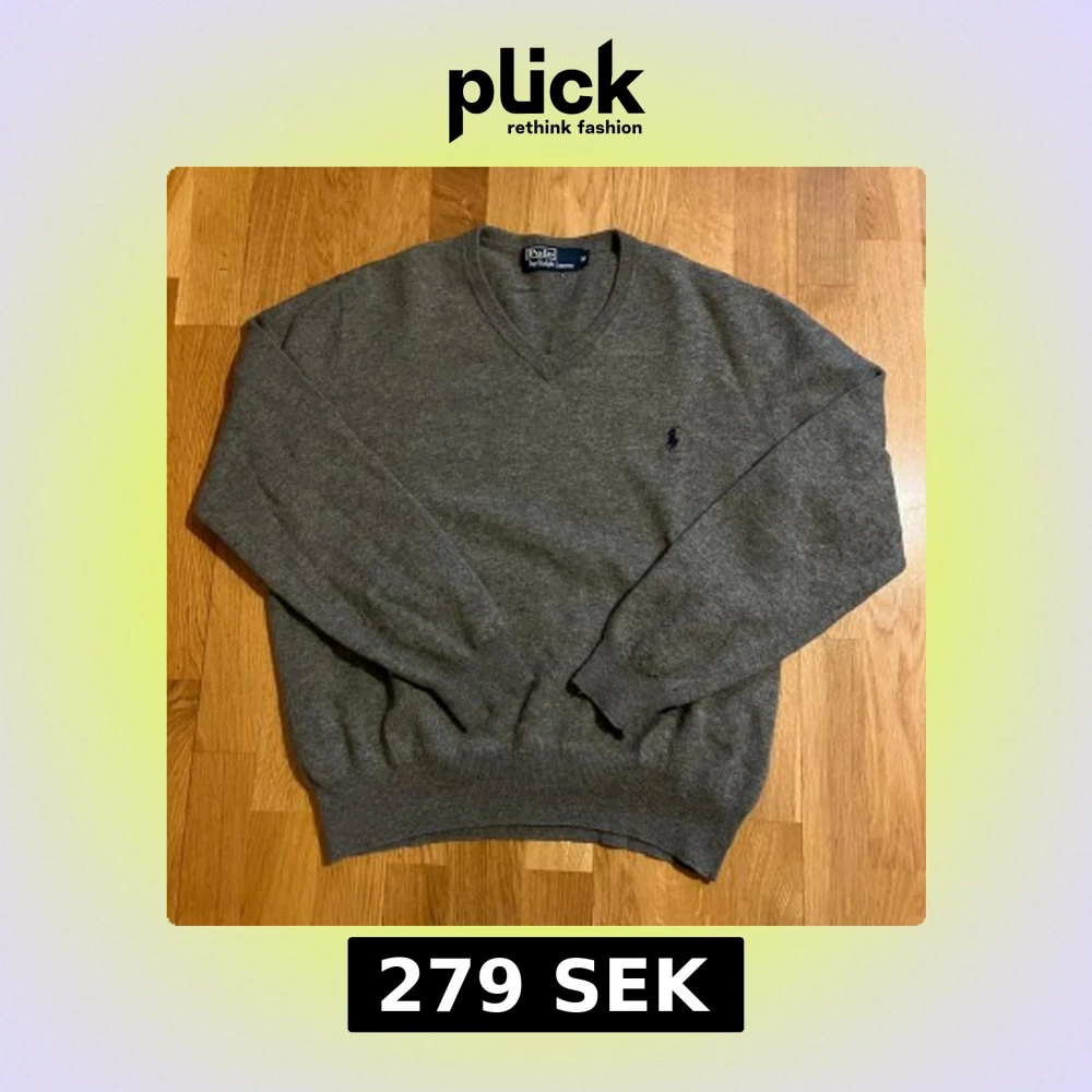 Säljer en stilren grå tröja från Polo Ralph Lauren med v-ringning och broderad logga på bröstet. Materialet är ull så att den är riktigt varm och snygg. Skick: 8/10. Storlek: M