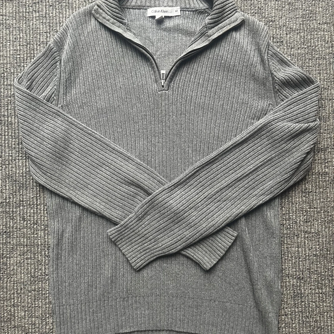 Snygg grå ribbstickad tröja från Calvin Klein med half zip-dragkedja och hög krage. Långärmad modell i mjukt material som sitter skönt och passar perfekt till lager-på-lager. Enkel men stilren design som funkar till det mesta. Skickar inom 1-2 dagar👏. Svarar ofta snabbt så hör av er vid frågor och funderingar🙌. kom gärna med prisförslag så kan vi säkert lösa något som funkar för båda😄