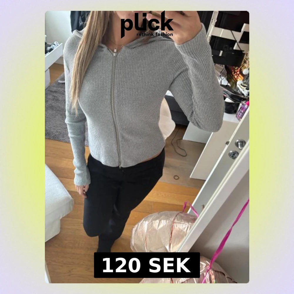 Säljer en grå ribbad gofta från Gina som sitter perfekt! Knappt använd alls.