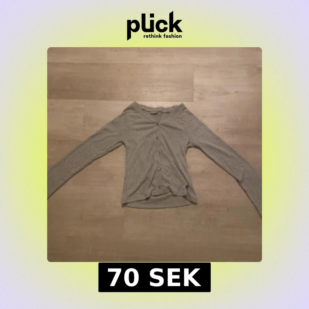 Säljer en stilren grå ribbad kofta från Ü. Den har långa ärmar och knappar framtill, perfekt för lager-på-lager-stil. Passar både till vardags och mer avslappnade tillfällen.