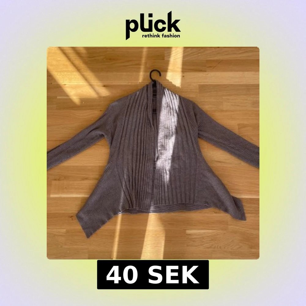 Säljer en grå ribbad kofta med lång ärm och öppen front. Koftan har en snygg, avslappnad passform och är perfekt att slänga på sig när det är lite kyligare. Materialet är mjukt och stretchigt, vilket gör den superbekväm.