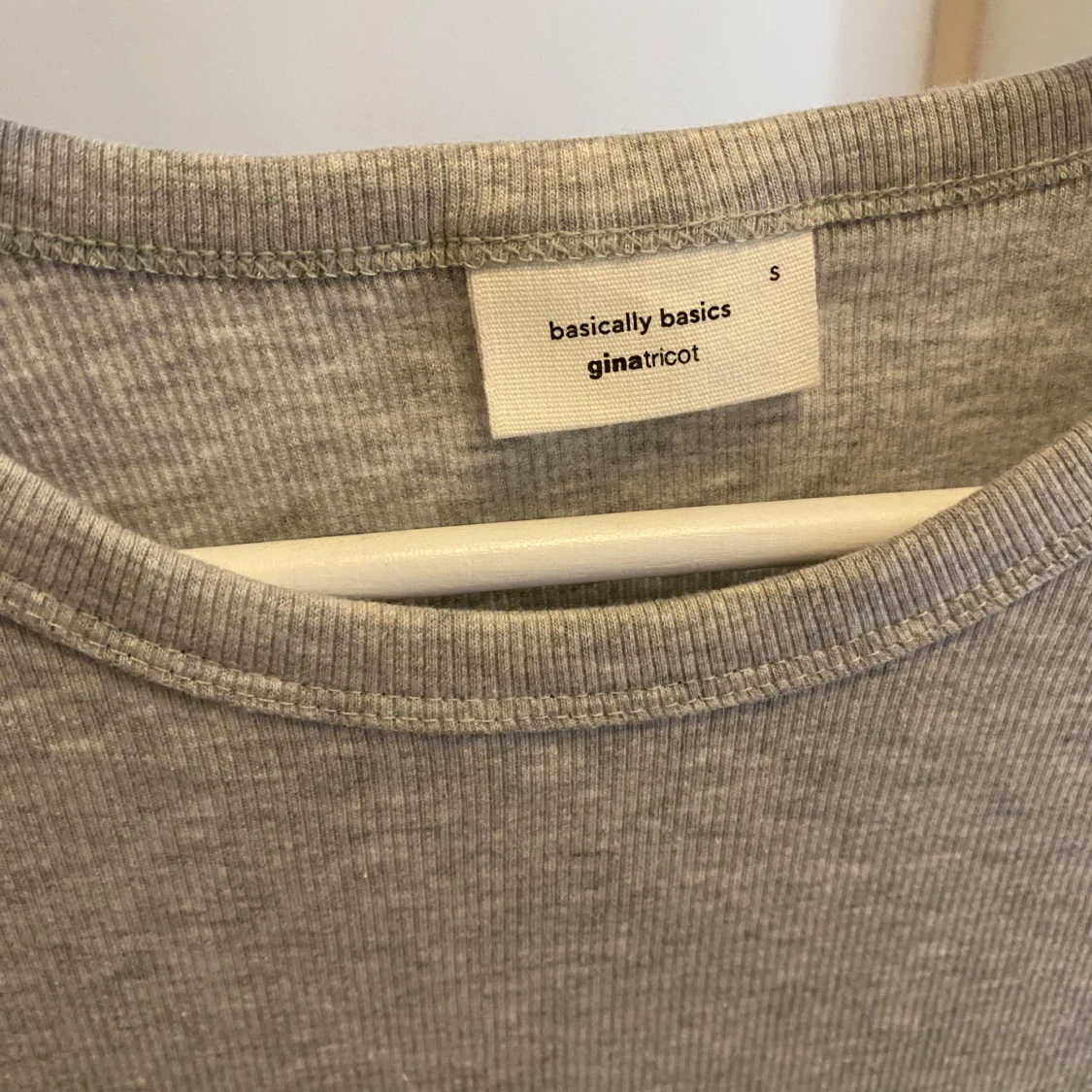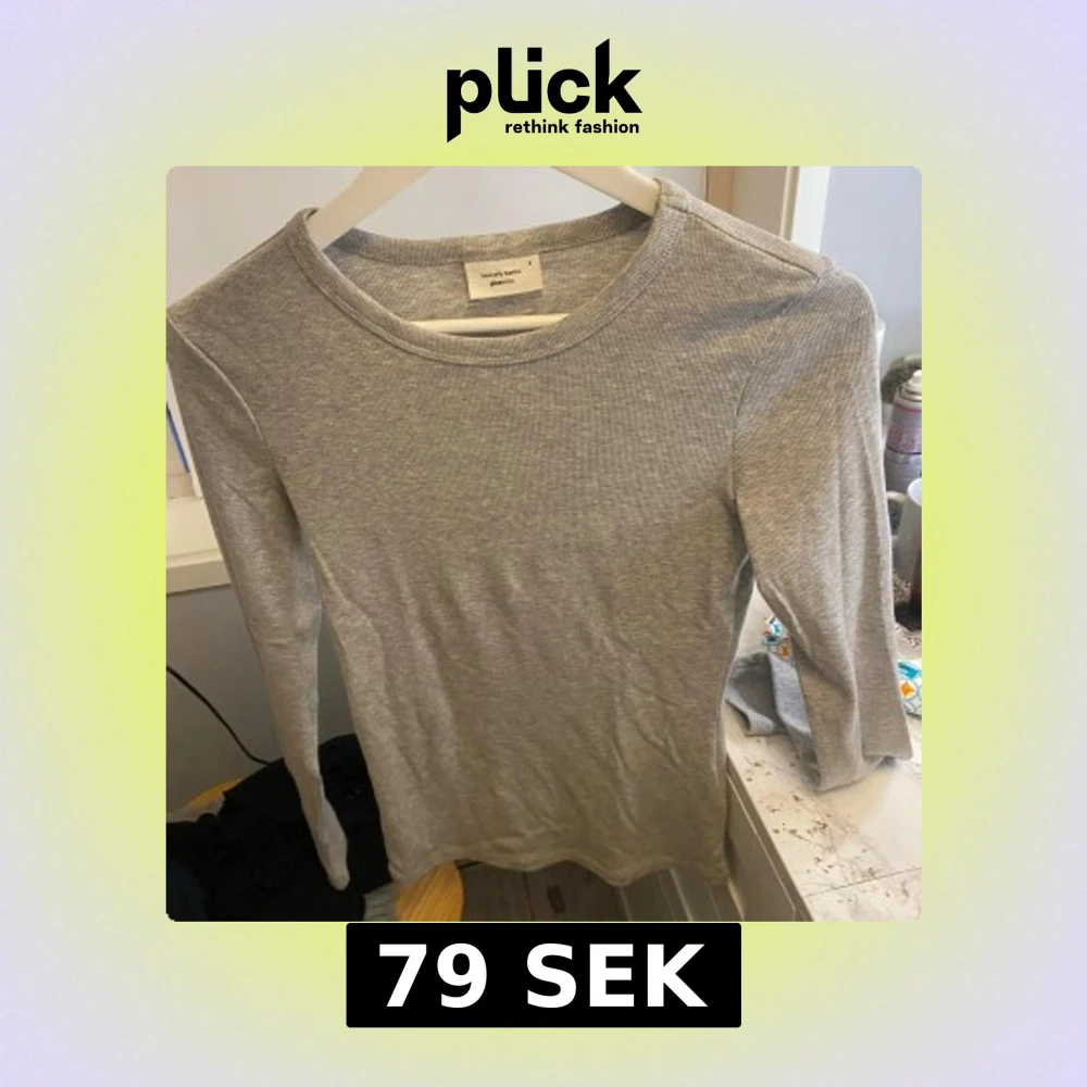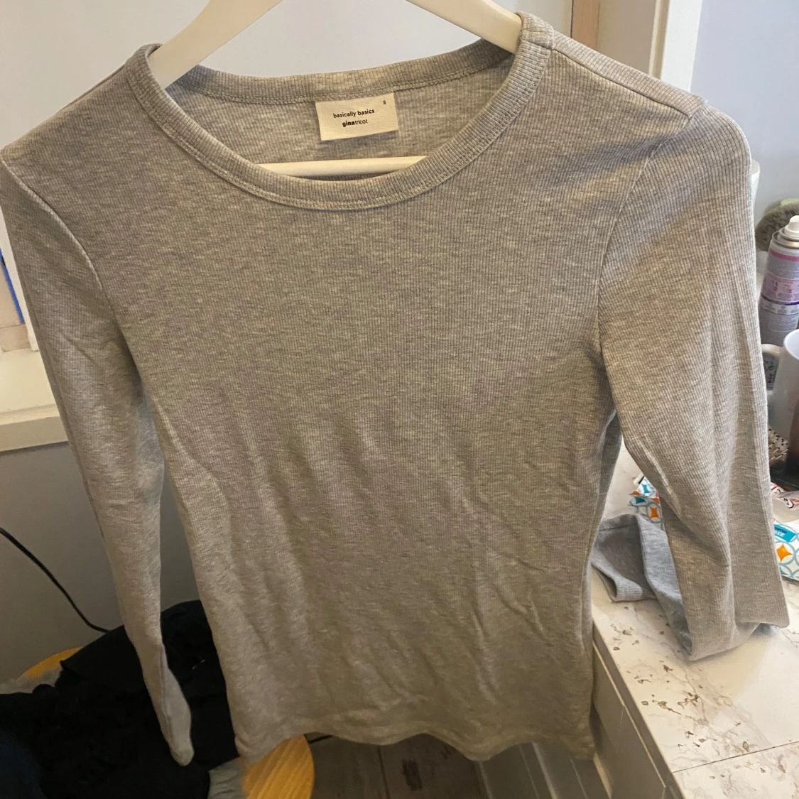 Säljer en enkel och stilren grå ribbad långärmad tröja från Gina Tricot. Perfekt basplagg med rund halsringning och mjukt material. Passar till allt och är superbekväm att bära.