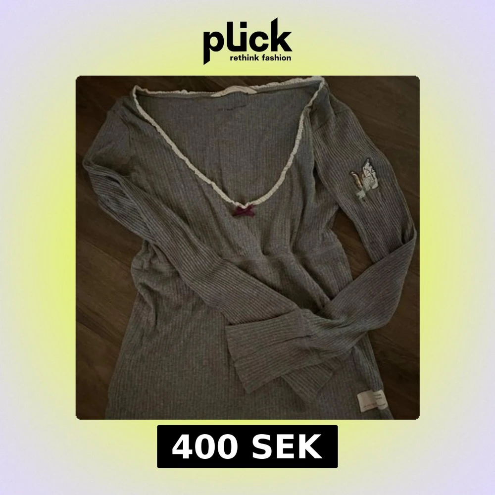 Supersöt grå ribbad tröja från Odd Molly med v-ringning, spetskant och liten rosett framtill. Broderad detalj på ena ärmen. Perfekt för lager-på-lager och snygg till jeans eller kjol. Använd fåtal gånger så den är i väldigt fint skick 🤩💕