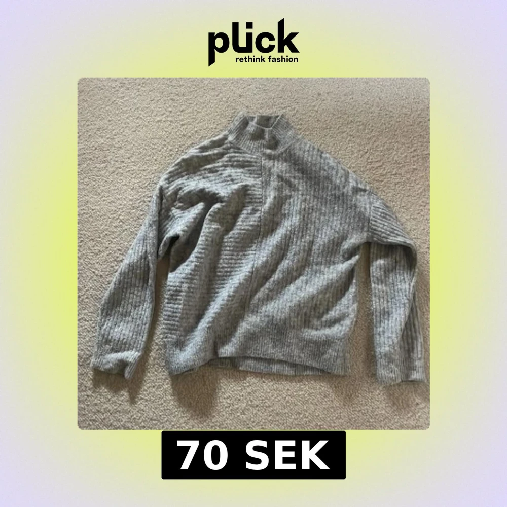 Säljer en stilren grå ribbad polotröja med långa ärmar. Perfekt för kyligare dagar med sin höga krage och mjukt material. Passar bra till både jeans och kjol för en avslappnad look.