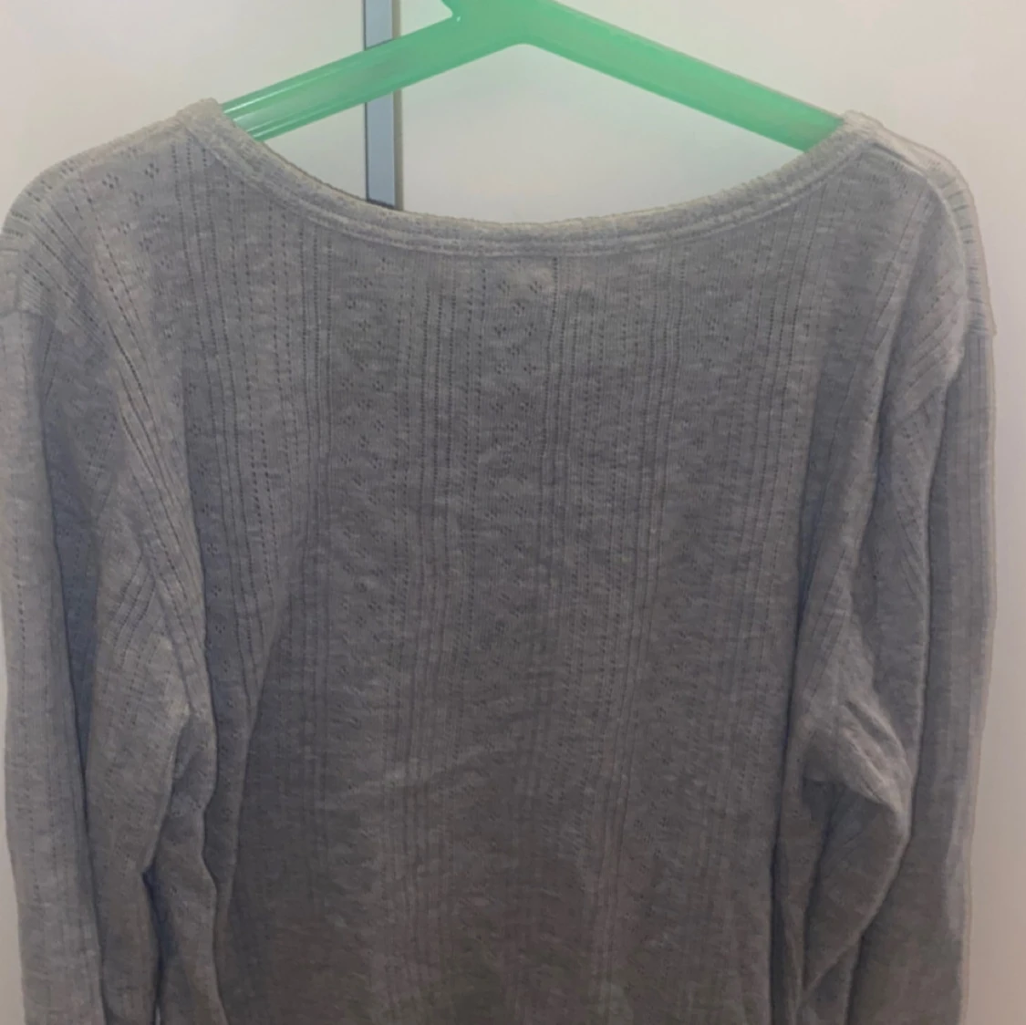 Grå långärmad tröja från Vero Moda i ribbat material med diskret mönster. Tröjan har en rund halsringning och en enkel, clean look som passar perfekt till jeans eller kjol. Skön och lätt att bära under höst och vinter.