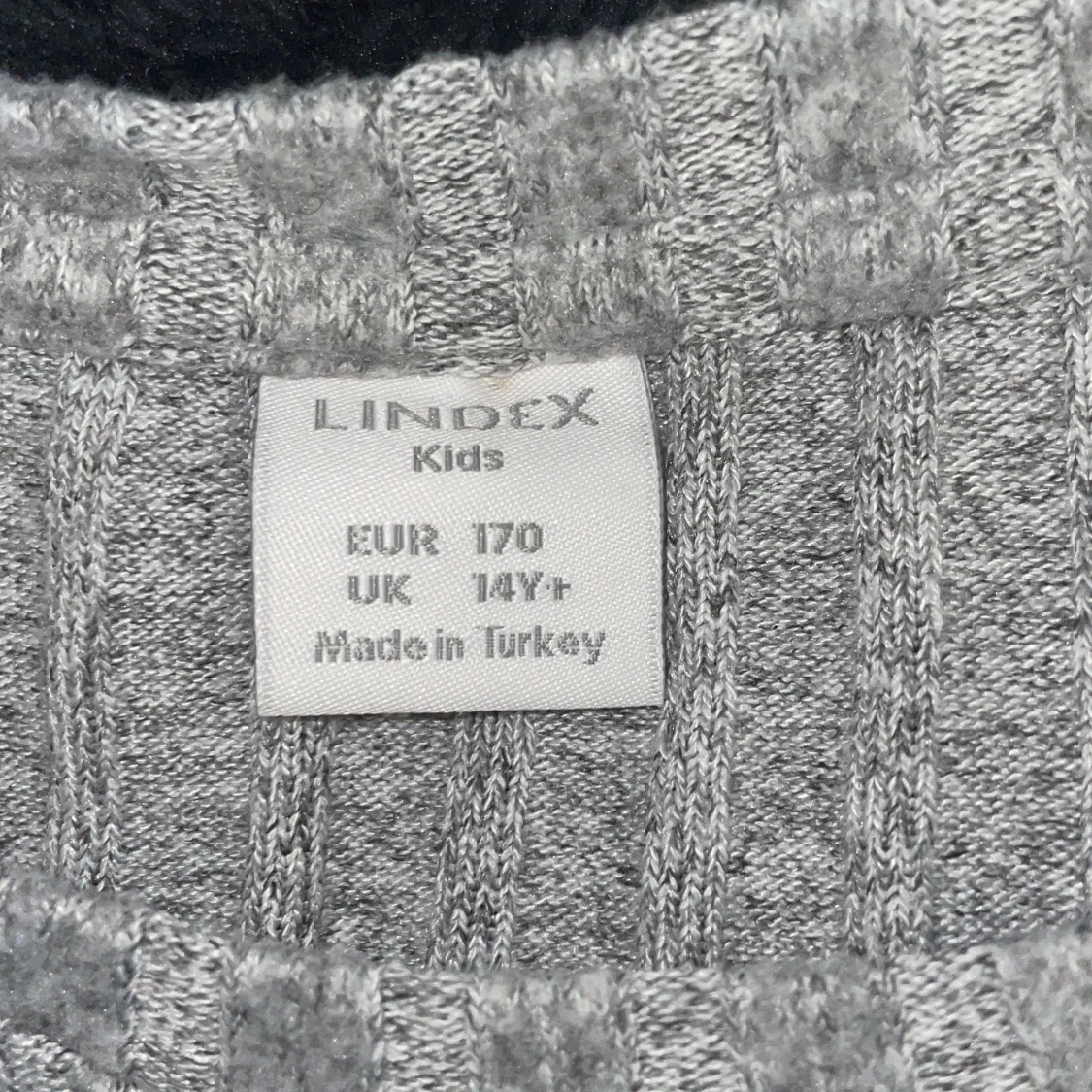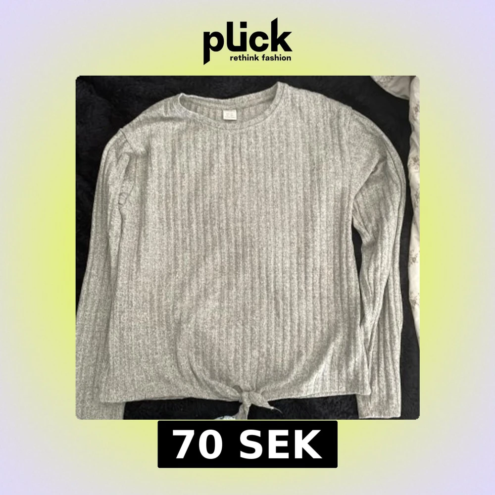 Grå långärmad tröja från Lindex i storlek 170. Tröjan är ribbad och har en snygg knytning längst ner framtill. Perfekt för dig som gillar en enkel men trendig stil. Mjuk och skön att ha på sig.