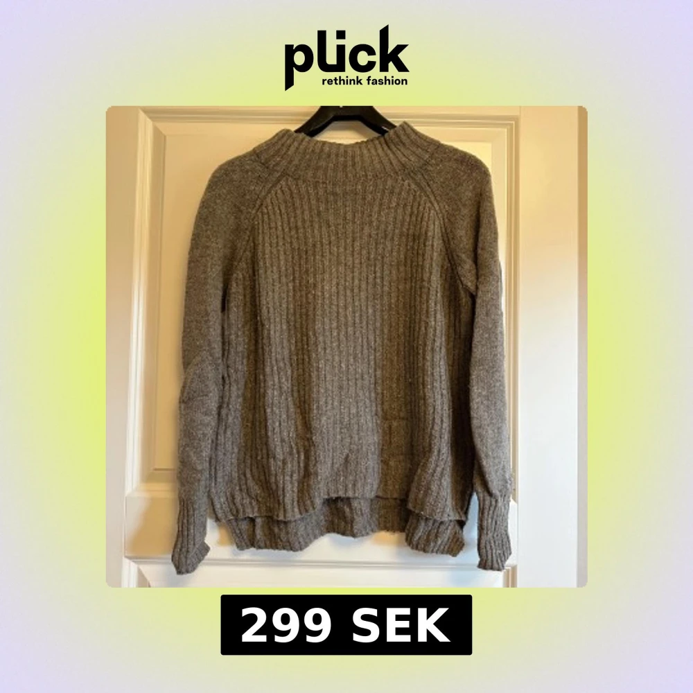 Mysig grå ribbstickad tröja med långa ärmar. Tröjan har en relaxed fit och är perfekt för kyliga dagar. (Tröjan är skrynklig på bilden då den legat vikt, borde lösa sig med en tvätt!)