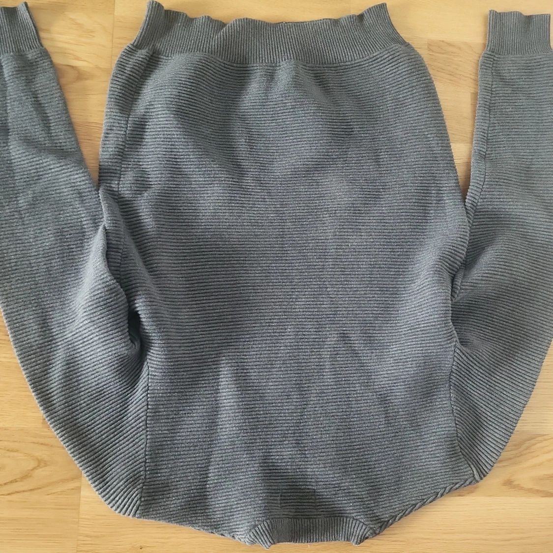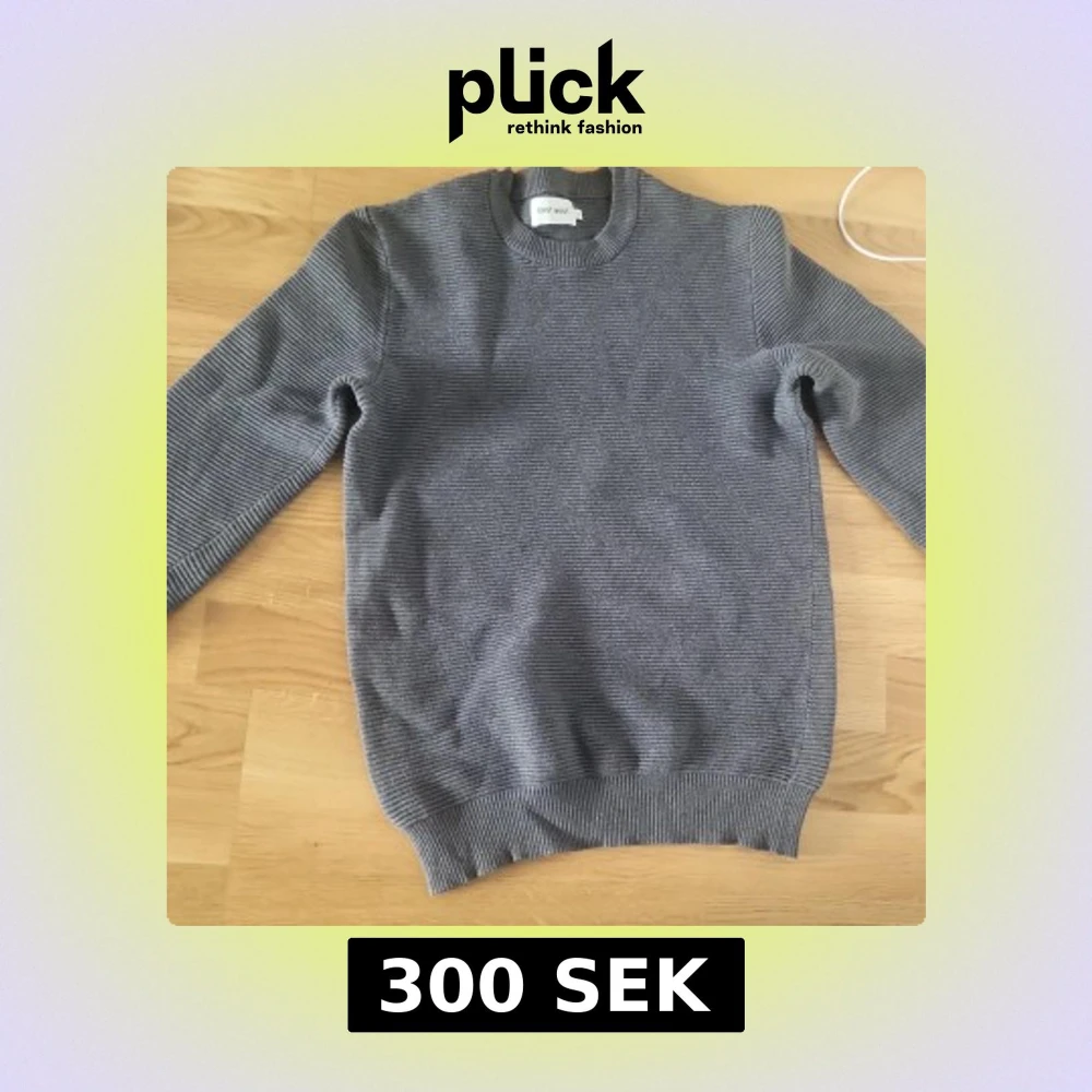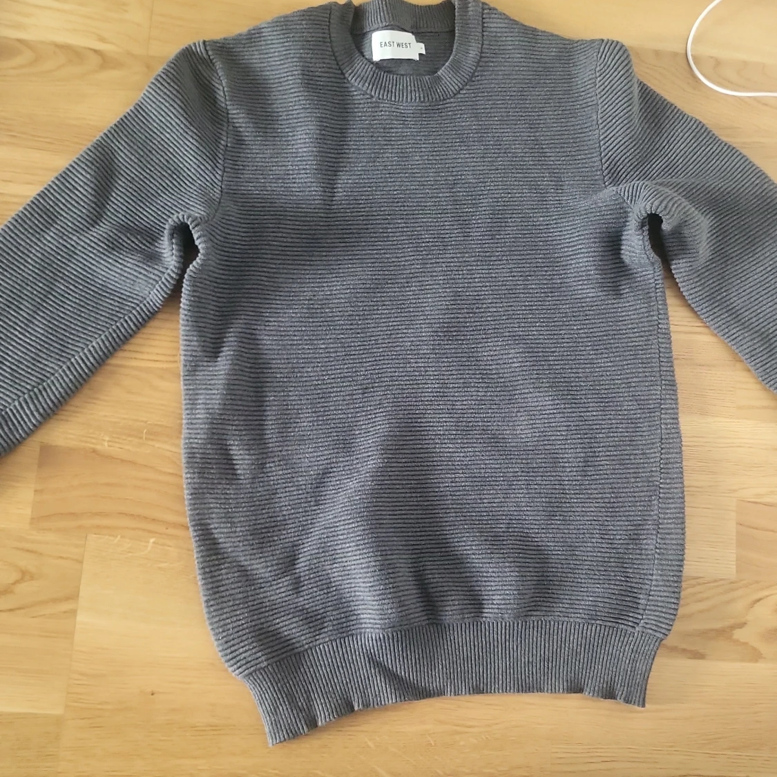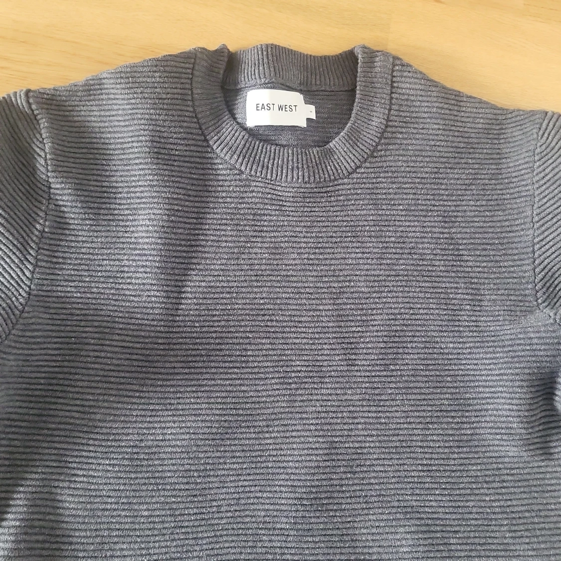 Säljer en stilren grå ribbstickad tröja från East West. Tröjan har rund halsringning, lång ärm och en clean look med diskreta horisontella ränder i stickningen. Perfekt för dig som gillar enkel och snygg stil.