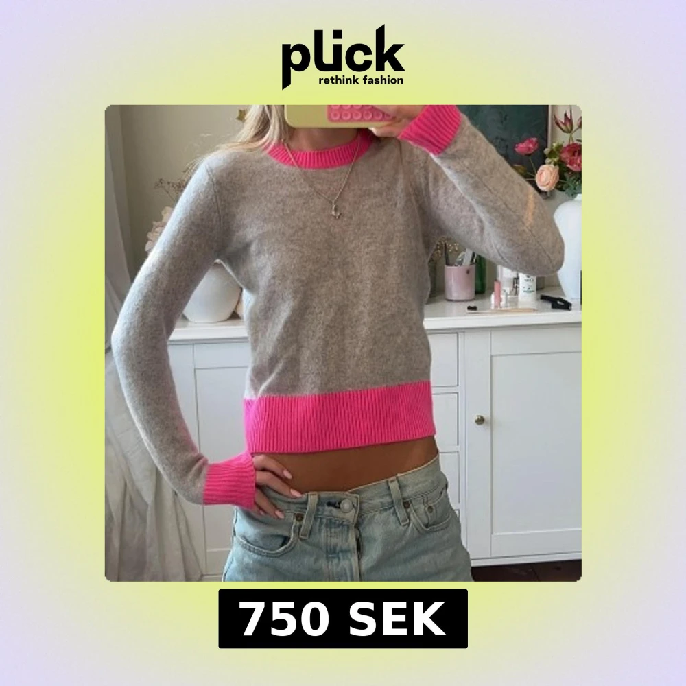 Grå och Rosa tröja från From Future i storlek XS. 100% Kashmir vilket gör den suuuupermjuk! Inte nopprig alls, och i perfekt skick förutom att det finns ett litet hål vid armvecket, därav det reducerade priset - nypris 1700kr🌈