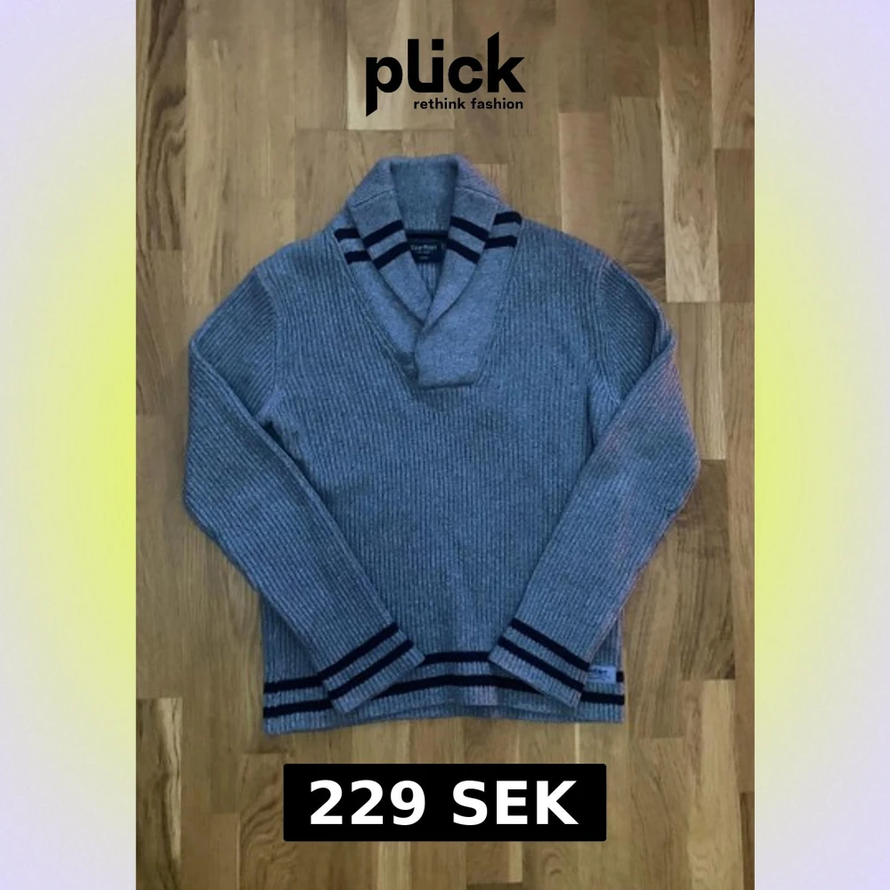 Snygg grå kofta från East West i ribbstickad design med svarta ränder på krage, ärmslut och nederkant. Koftan har bred krage med två knappar och långärmad passform. Perfekt för dig som gillar klassisk stil med en twist. Storlek M och passar mig som är 175cm perfekt!