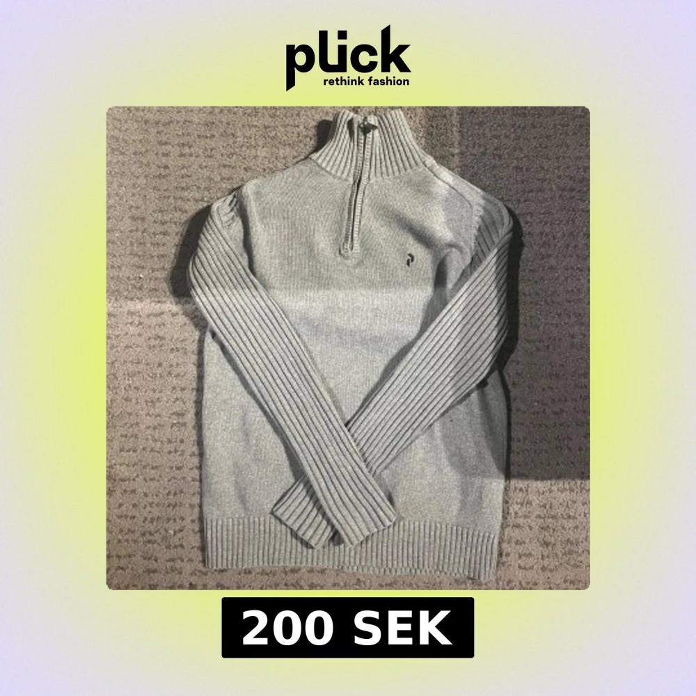 Snygg grå stickad tröja från Peak Performance med half zip och hög krage. Tröjan har ribbade muddar och ärmar, samt en diskret svart logga broderad på bröstet. Perfekt för dig som gillar stilren och sportig look. Passar dig som är 175 typ och väger 65kg