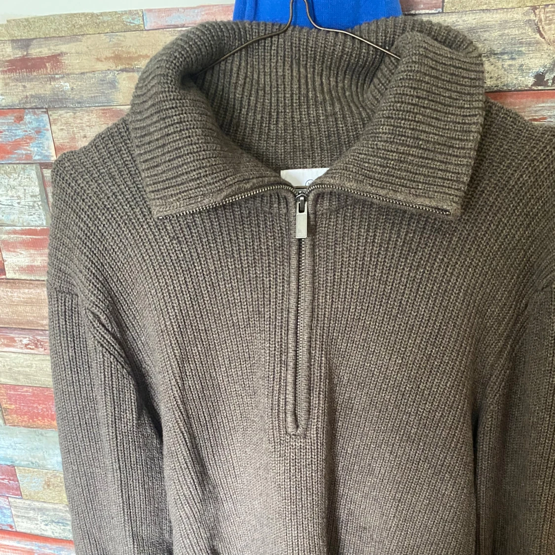 Grå stickad half zip-tröja från Bläck