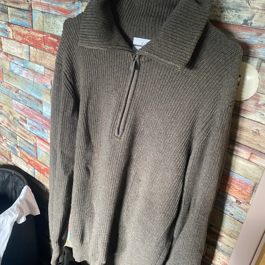 Säljer en grå stickad tröja från Bläck i storlek M. Tröjan har en hög krage och en snygg half zip-dragkedja framtill. Den är så gott som ny! Pris kan diskuteras