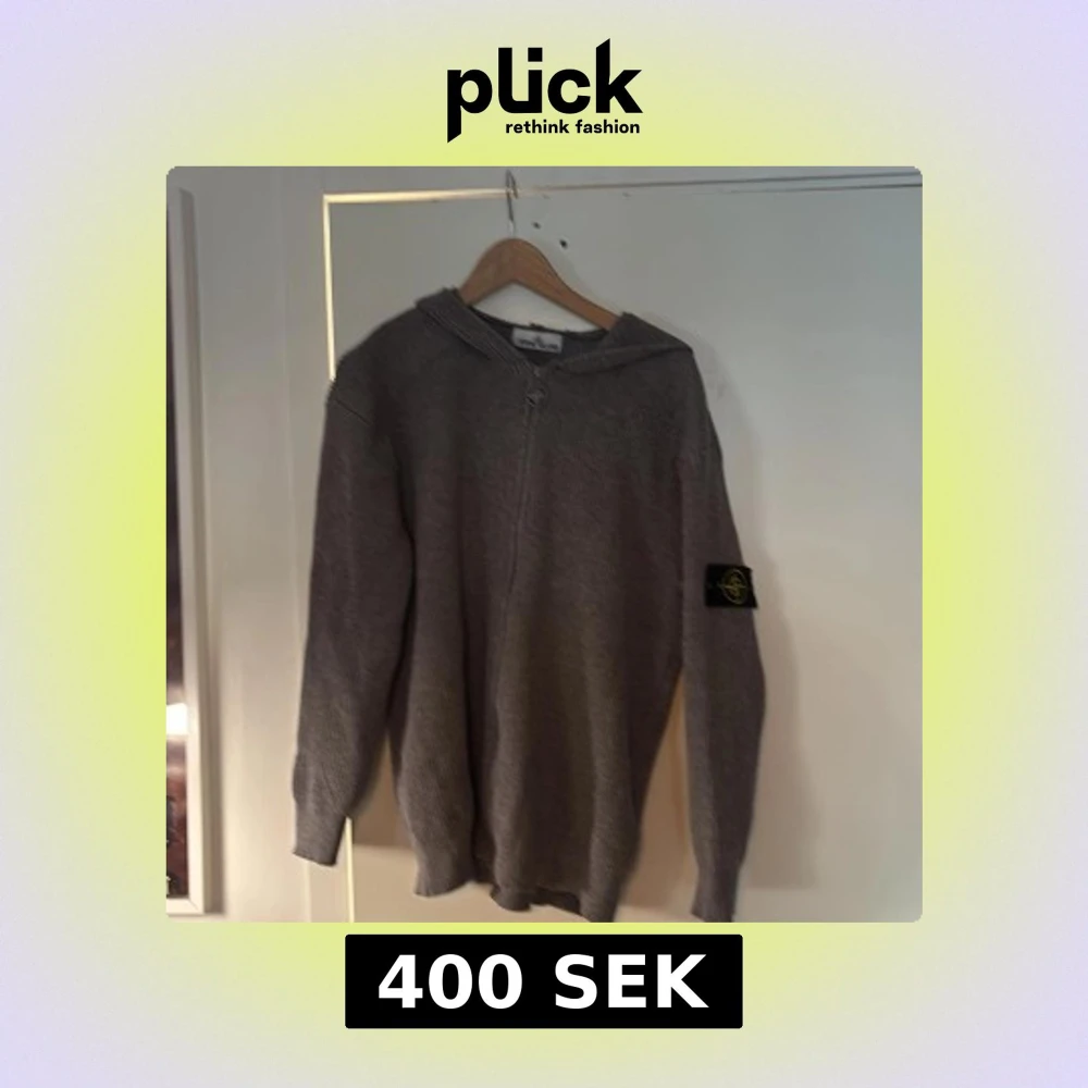 Säljer en grå stickad hoodie från Stone Island med ikonisk patch på ärmen. Tröjan har huva, ribbstickad struktur och dragkedja framtill med snygg logga på zip-pullern. Perfekt för dig som gillar streetwear och vill ha något både stilrent och bekvämt.