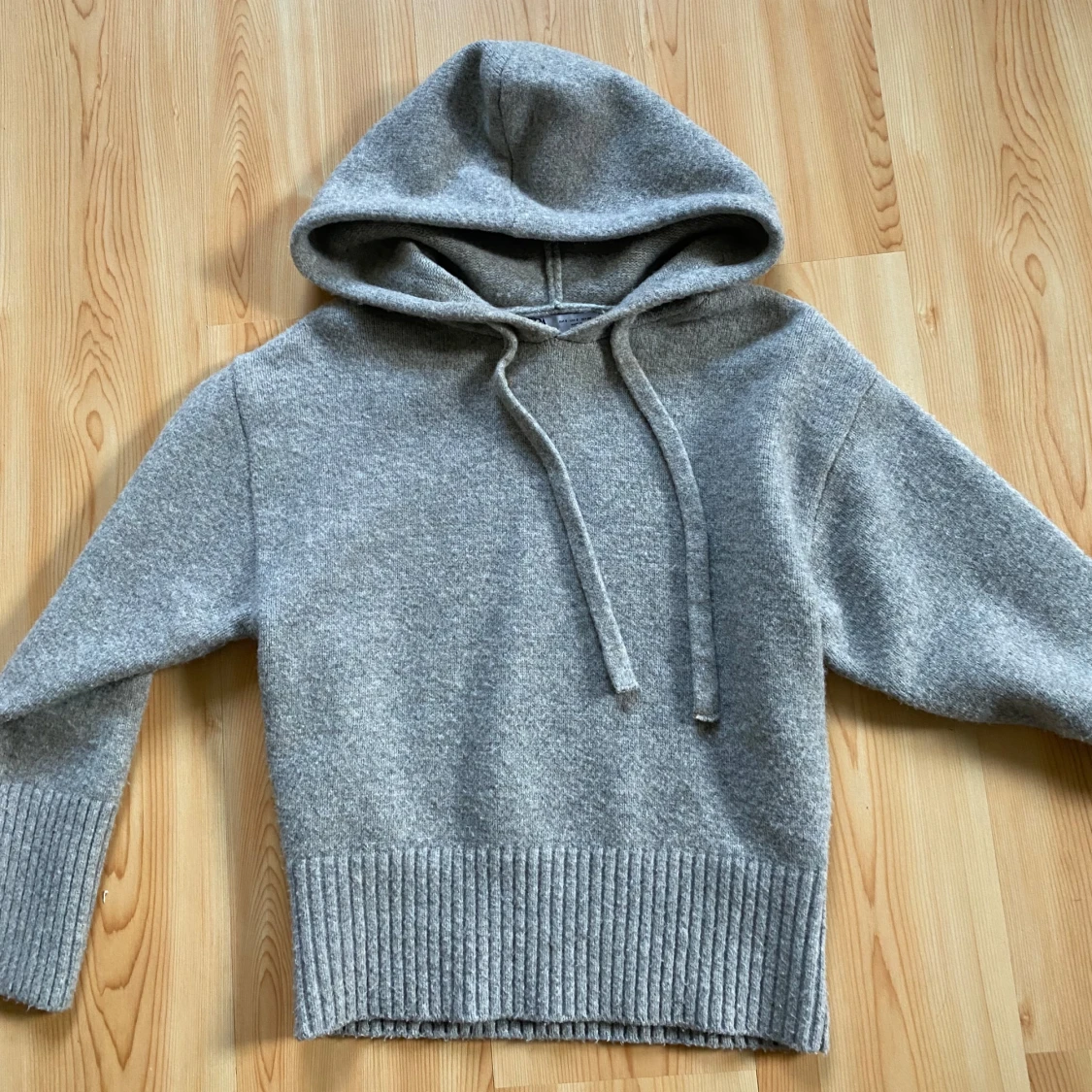 Mysig grå stickad hoodie med huva. Perfekt för kalla dagar och enkel att matcha med det mesta. Nästa helt oanvänd.