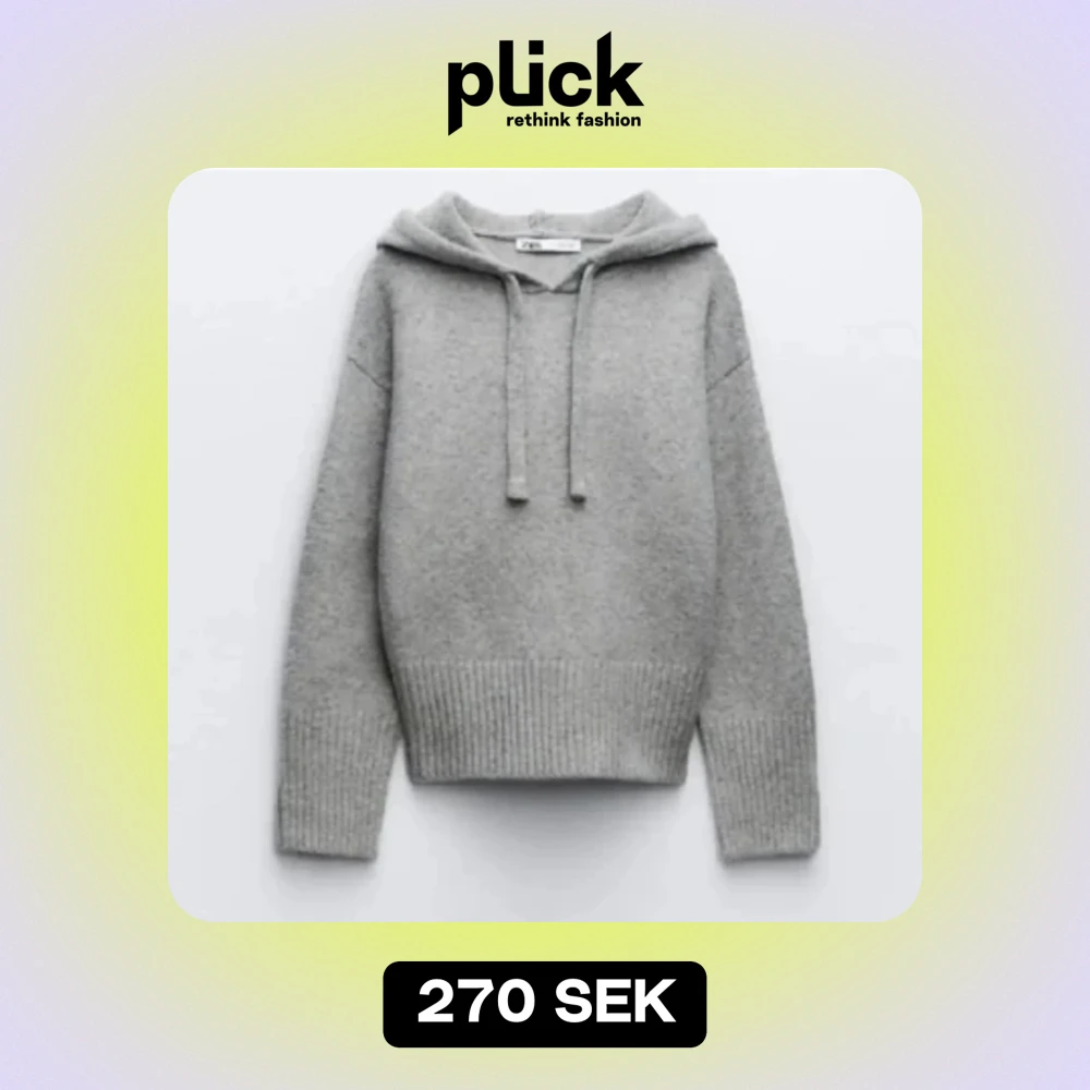 Säljer en supermysig grå stickad hoodie från Zara. Den har en avslappnad passform med långa ärmar och en praktisk huva med dragsko. Perfekt för kyliga dagar när du vill vara både bekväm och stilren. Passar till både jeans och leggings!