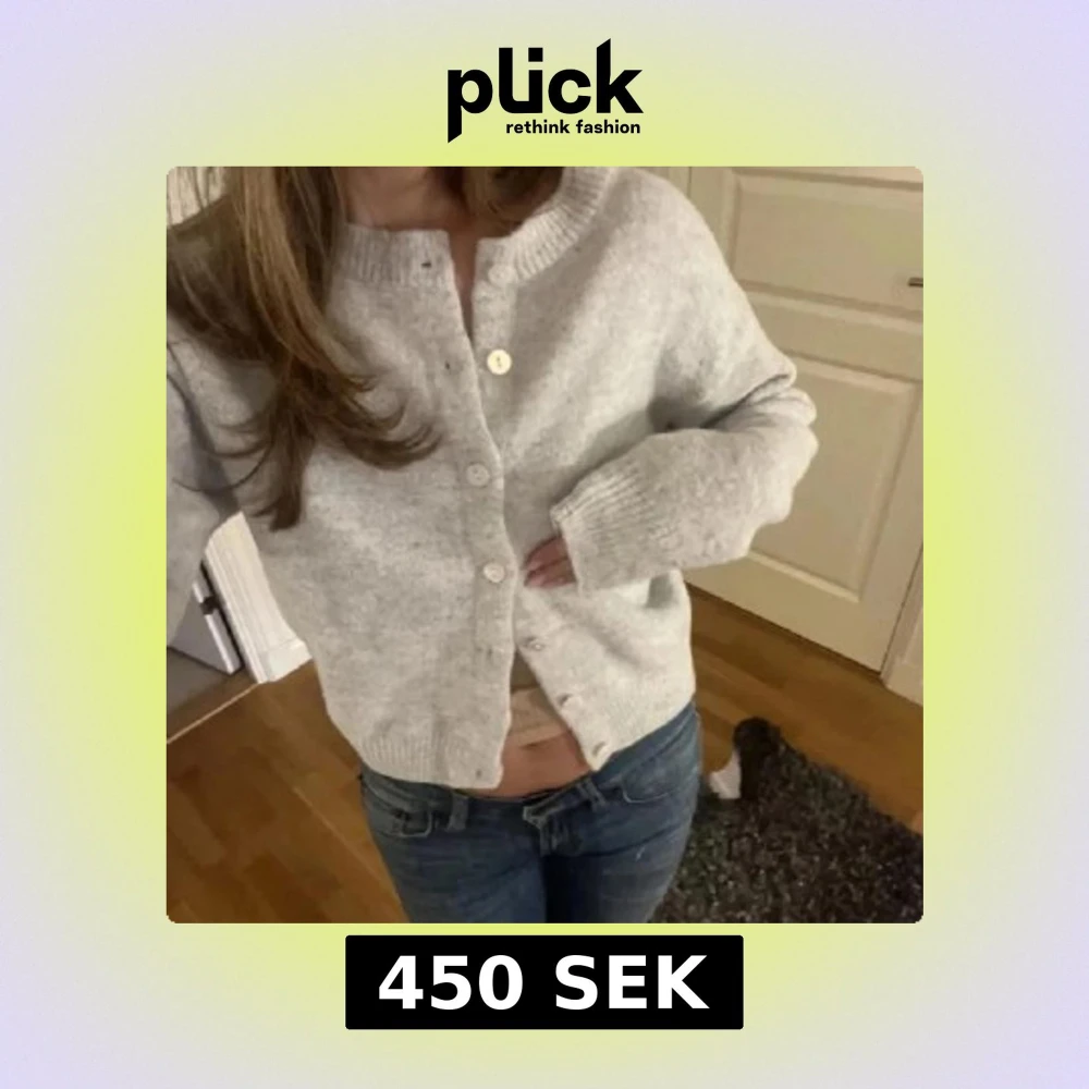 Mysig grå stickad kofta med knappar framtill. Perfekt för kyligare dagar och enkel att matcha med olika outfits. (Lånad bild skriv om ni vill ha egen bild på den men den är likadan som på bilden)💕