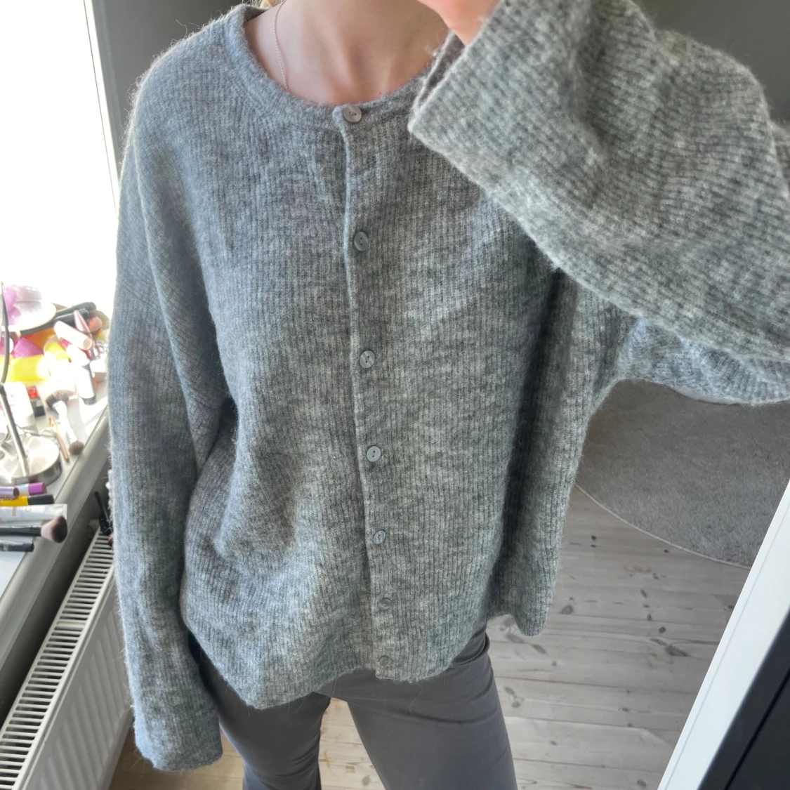 Mysig grĂ„ stickad kofta frĂ„n & Other Storiesđ©¶. Den Ă€r anvĂ€nd fĂ„tal gĂ„nger! Inga defekter, i storlek L men passar som lite oversize pĂ„ M och Sđ„°