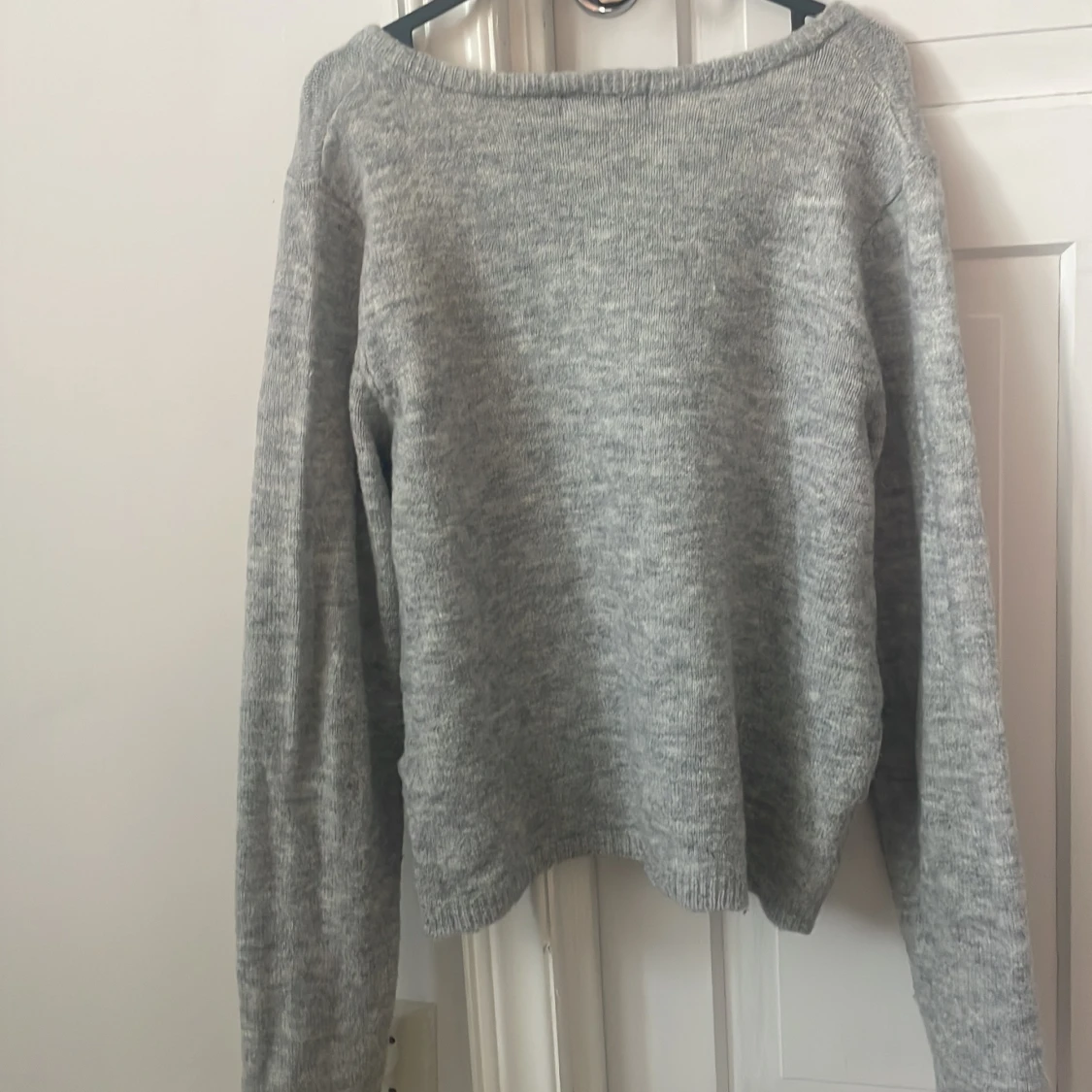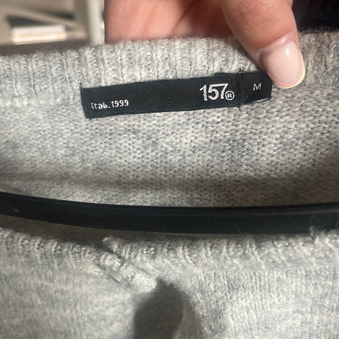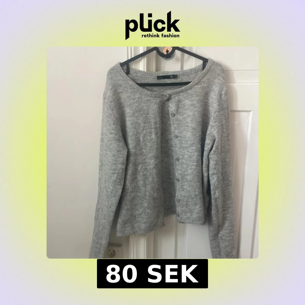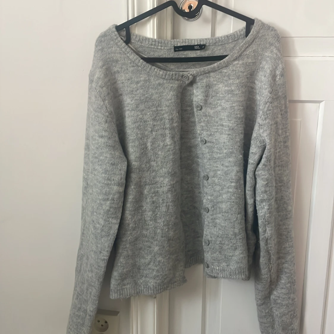 Grå stickad kofta, från lager 157, med knappar. Använd 2 gånger.