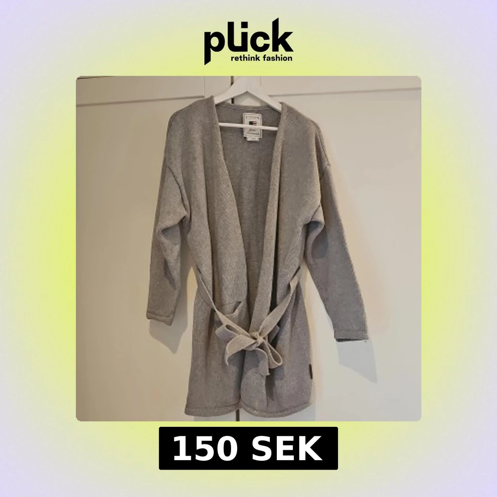 Säljer en stilren grå stickad kofta från Lexington. Koftan har ett knytband i midjan och praktiska fickor. Perfekt för kyliga dagar med sin mjuka bomulls- och kashmirblandning.