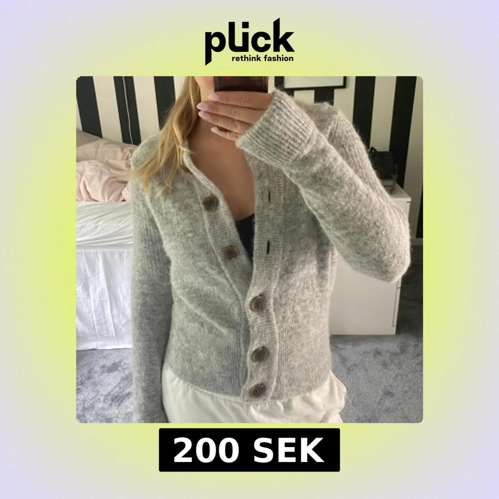 Mysig grå stickad kofta från Selected Femme med stora knappar.🤗