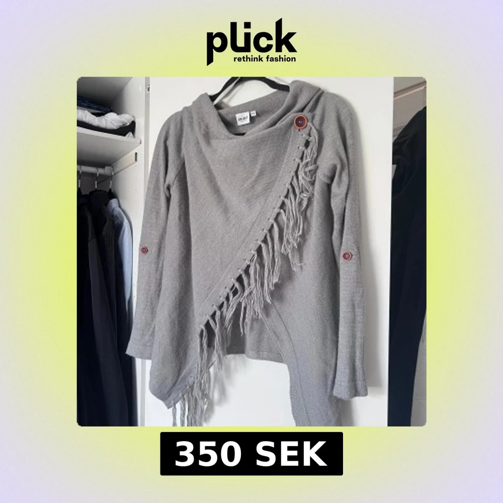 Säljer en grå stickad kofta från VILA i storlek XS. Koftan har asymmetrisk omlottknäppning med stora knappar, fransdetaljer längs kanten och kan bäras öppen eller stängd. Ärmarna kan vikas upp och fästas med knapp. Aldrig använd! ❤️ Önskar du veta exakta mått? Tveka inte att höra av dig!