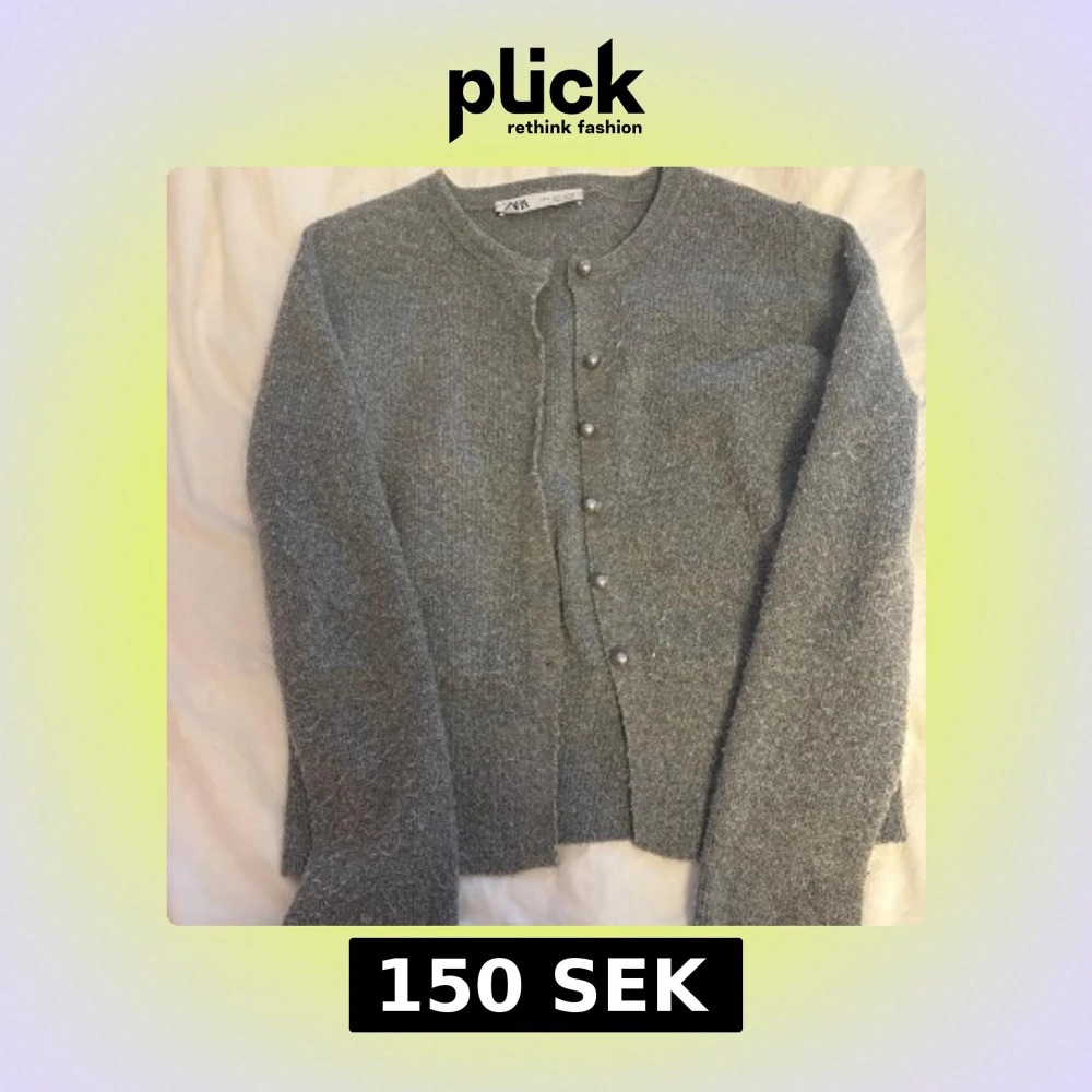 Mysig grå stickad kofta från Zara med rund hals och pärlknappar framtill. Koftan har långa ärmar och en enkel, klassisk design som är lätt att matcha med olika outfits. Perfekt för kyliga dagar och passar dig som gillar stilrena plagg.