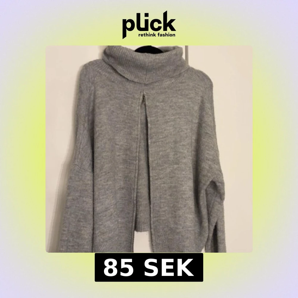 Mysig grå stickad kofta med hög polokrage och hel dragkedja bak till. Koftan har lång ärm och en loose fit, perfekt för lager på lager. Ribbstickade muddar och mjukt material gör den extra skön under kyliga dagar. Litet håll
