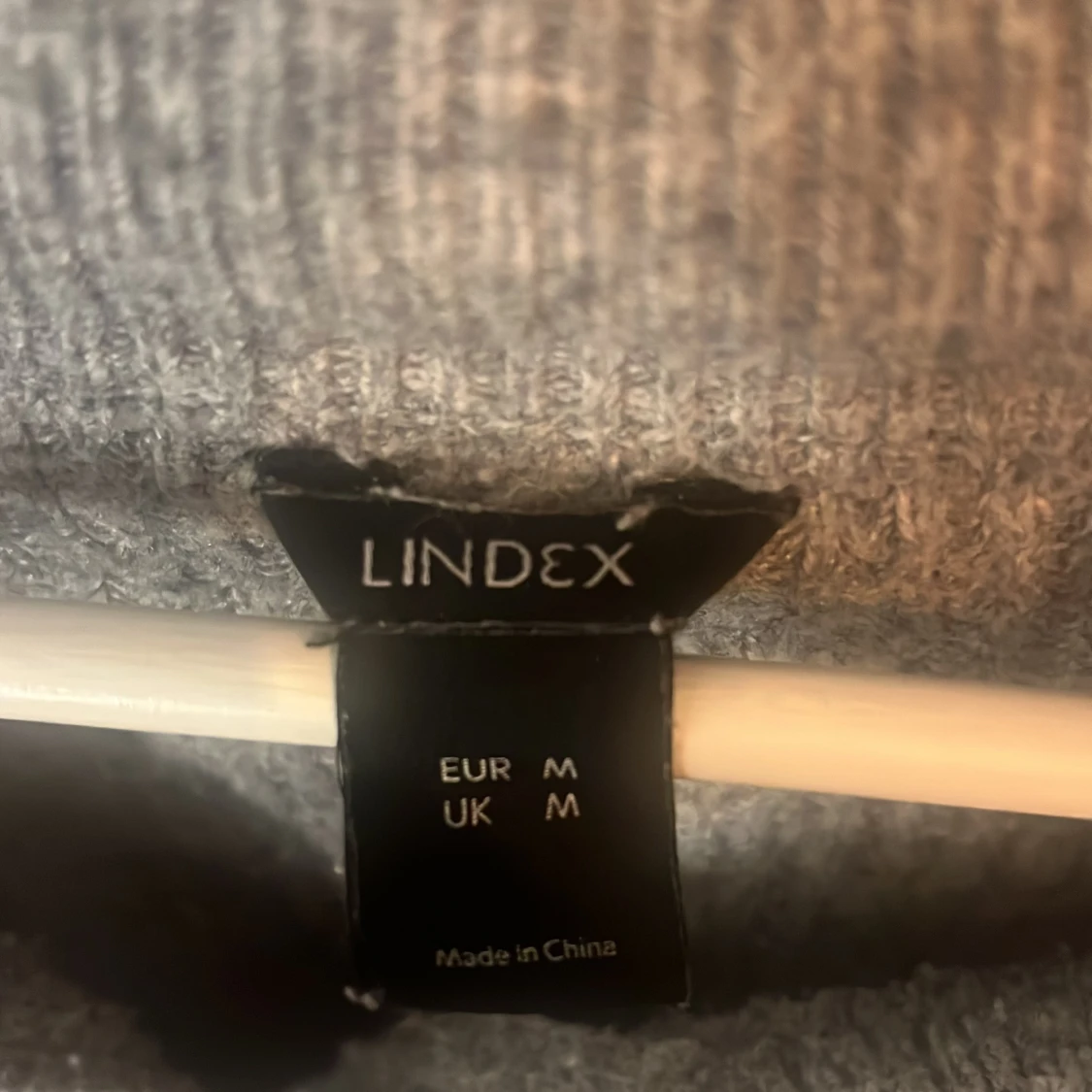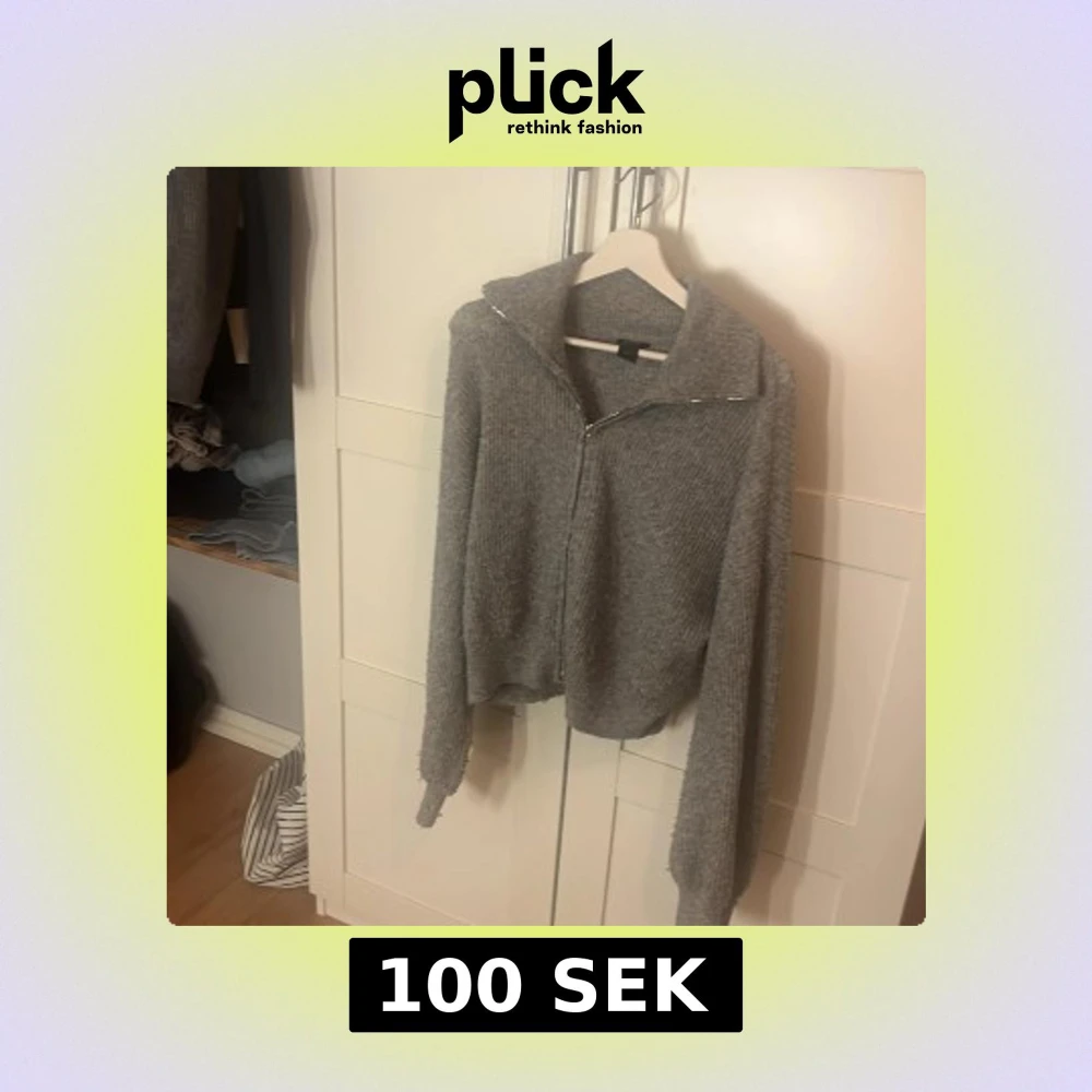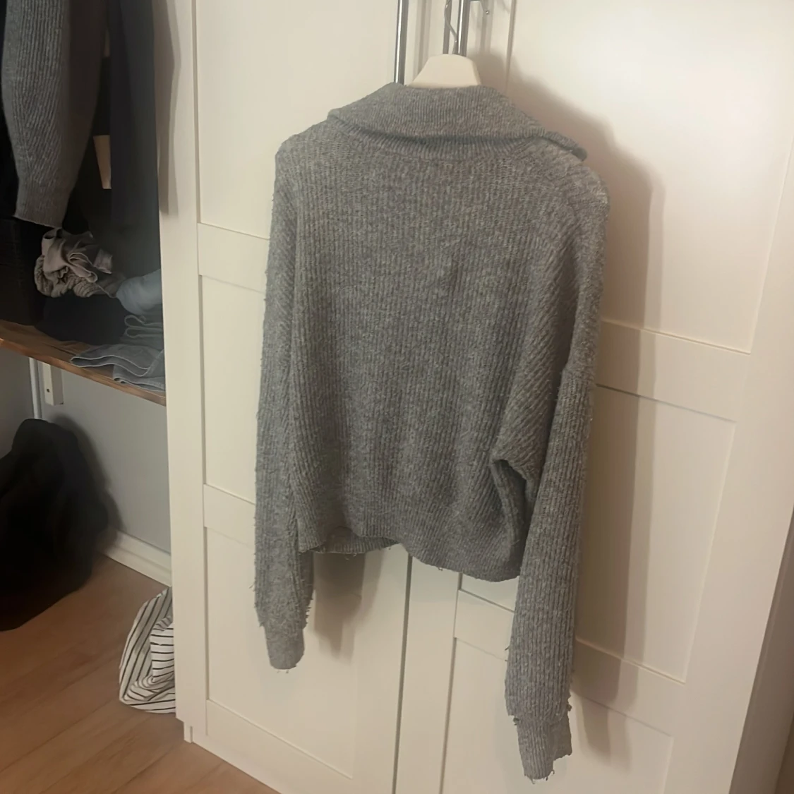 Mysig grå stickad kofta från Lindex i storlek M. Koftan har en bred krage, långärmad passform och dragkedja framtill. Ribbad struktur ger en cool vibe och den är perfekt för kyliga dagar.
