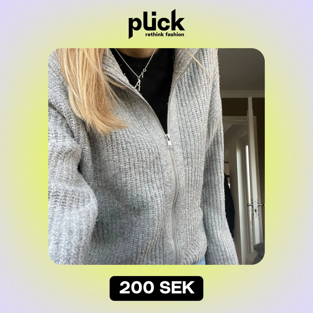 Mysig grå stickad kofta från BikBok med dragkedja framtill. Perfekt för kyliga dagar och passar till både jeans och kjol. Koftan har en ribbad struktur och långa ärmar.