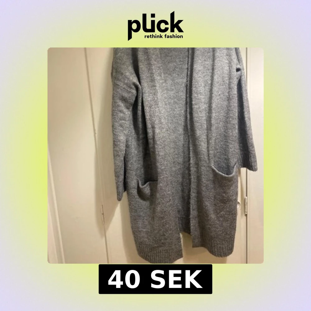 Mysig grå stickad kofta från SIS i storlek S. Koftan har lång ärm, två stora fickor framtill och ribbade muddar vid ärmslut och nederkant. Perfekt att slänga på sig när det är kyligt ute. Enkel och clean look som funkar till jeans eller leggings.