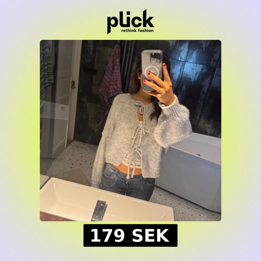 grå stickad kofta med knytning framtill. Koftan har långa ärmar och en croppad passform, passar både Medium och Small, använd 1 gång!💕