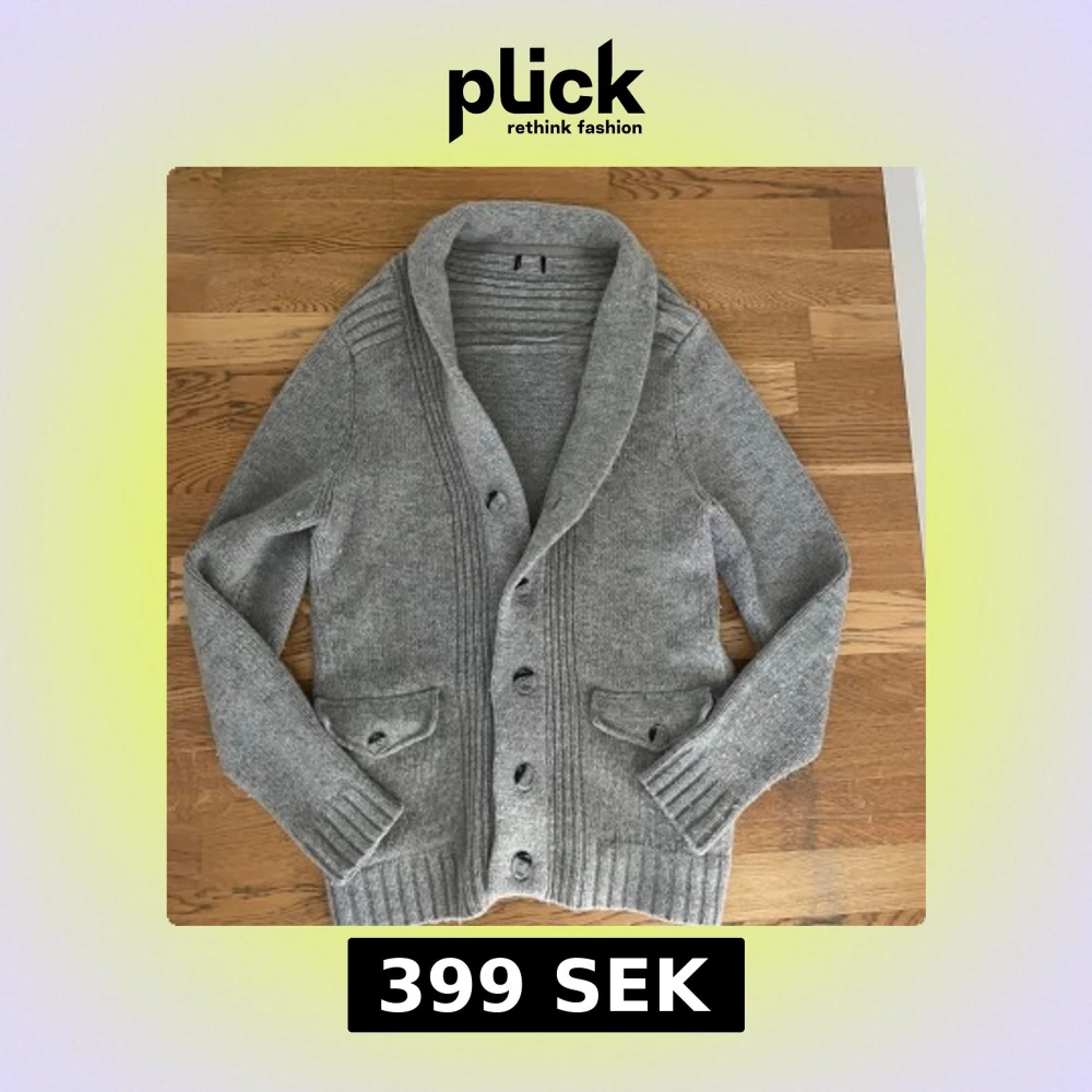 Snygg grå stickad kofta med sjalkrage och stora knappar framtill. Koftan har två fickor med lock och ribbade muddar vid ärmslut och nederkant. Perfekt för lager-på-lager och chill dagar. Enkel att matcha med jeans eller mjukisbyxor.